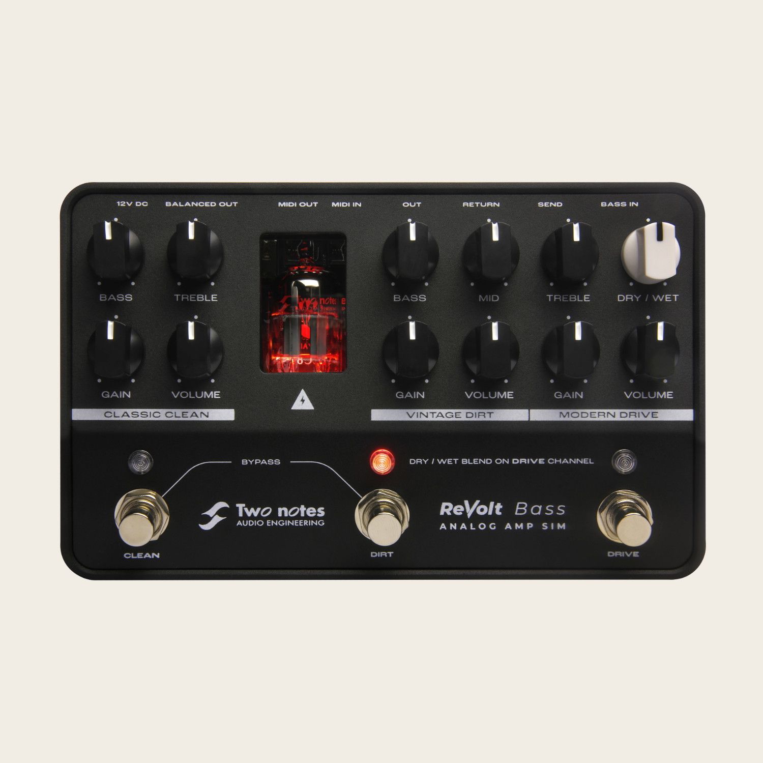 Two Notes - ReVolt Bass Analog Amp Simulation Röhrenpreamp für E-Bass 3 Kanäle vollanalorger Preamp - Bassverstärker Simulation 12AX7 Vorstufenröhren integrierter Dry Wet Blend enthält 10 Cabienet - Captures der Serie - G DynIR, inspiriert von fruhrenden Gitarrenverstärker Marken Regler: 1 x DI Out