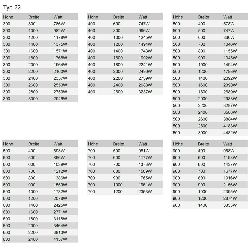 Typ 22 (HöhexBreite) 400x1600 mm Universalheizkörper Kompakt & Ventilheizkörper