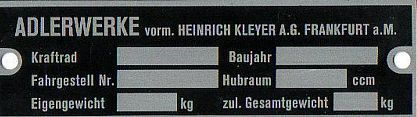Adler Typenschild Adler, Motorrad, Alu, Blanko, Neu