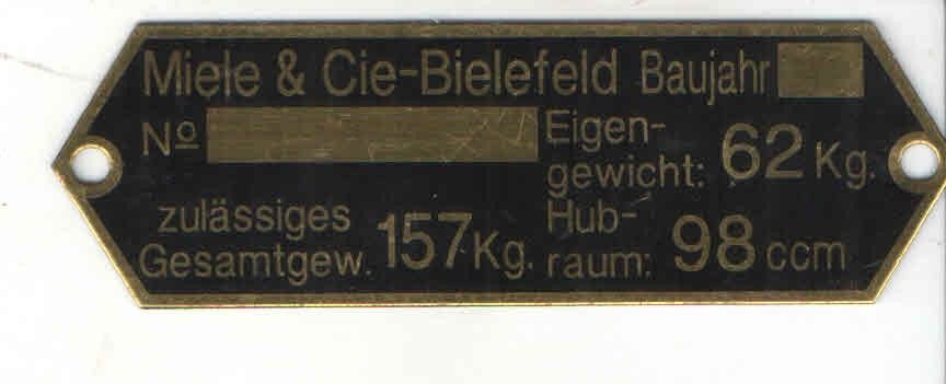 Typenschild Miele, Messing, Fahrrad, Moped, Oldtimer