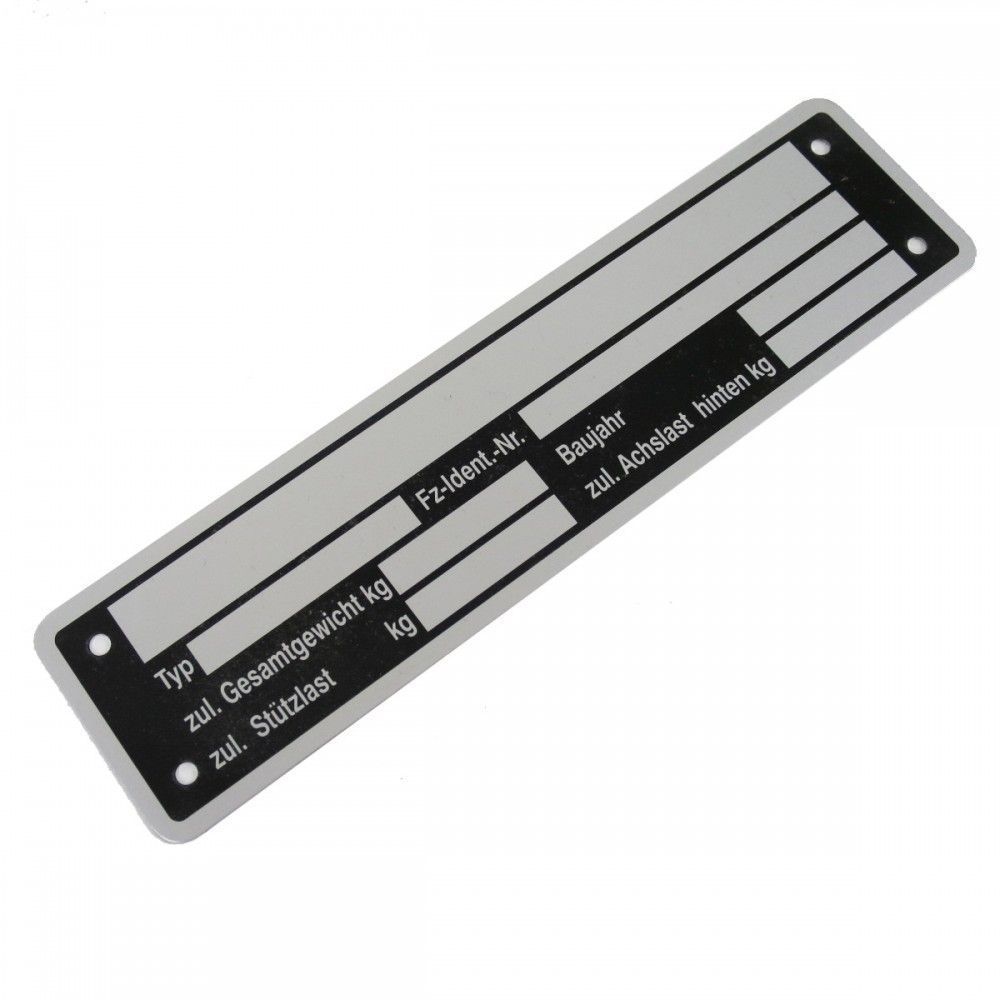 Typenschild neutral z.B. für PKW Anhänger mit 1 Achse