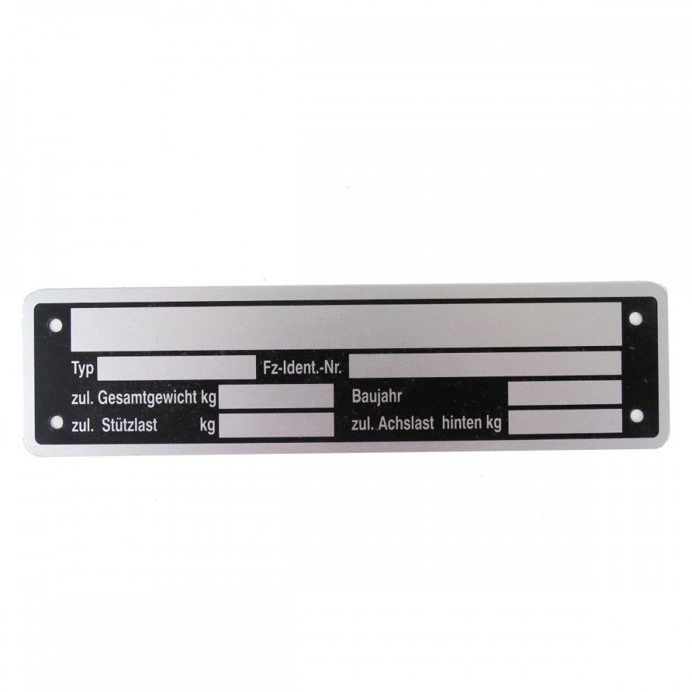 • Typenschild neutral z.B. für PKW Anhänger bis zu 3 Achsen