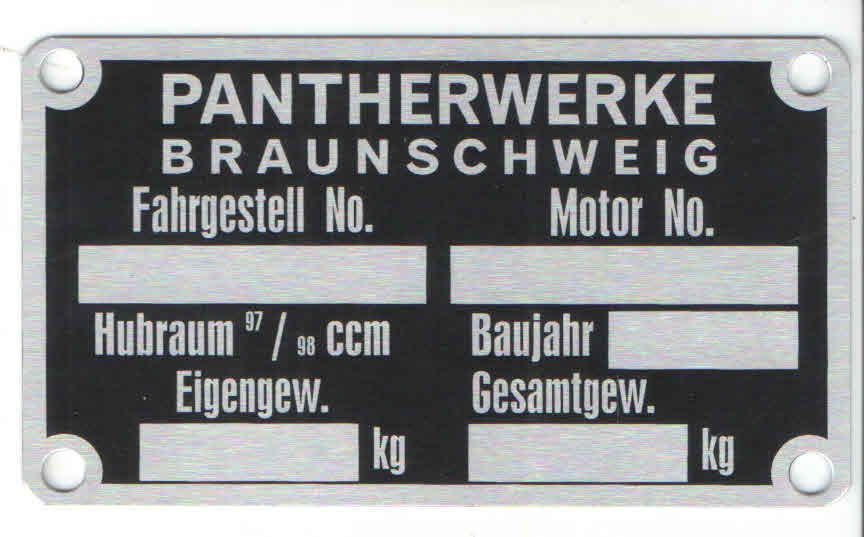 Typenschild Pantherwerke , Alu, Blanko Neu, Motorrad, Oldtimer
