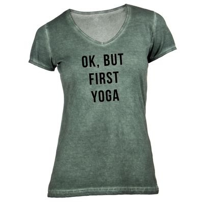 Damen T-Shirt V-Ausschnitt ok but first yoga
