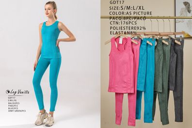 • Damen Gym Fitness Outfit Jogging Sport Set Frauen Yoga Tanktop mit Leggi