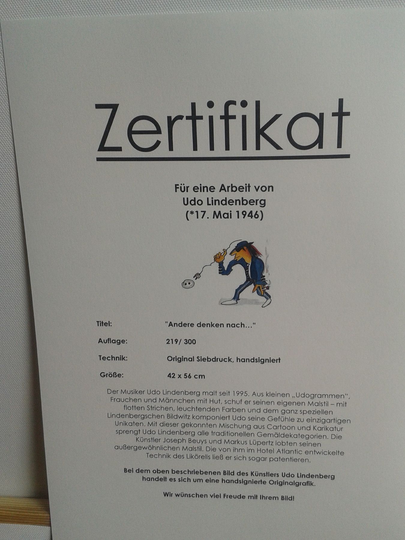 Udo Lindenberg Andere Denken nach wir Denken vor 42x56, gerahmt 80x64 handsigniert