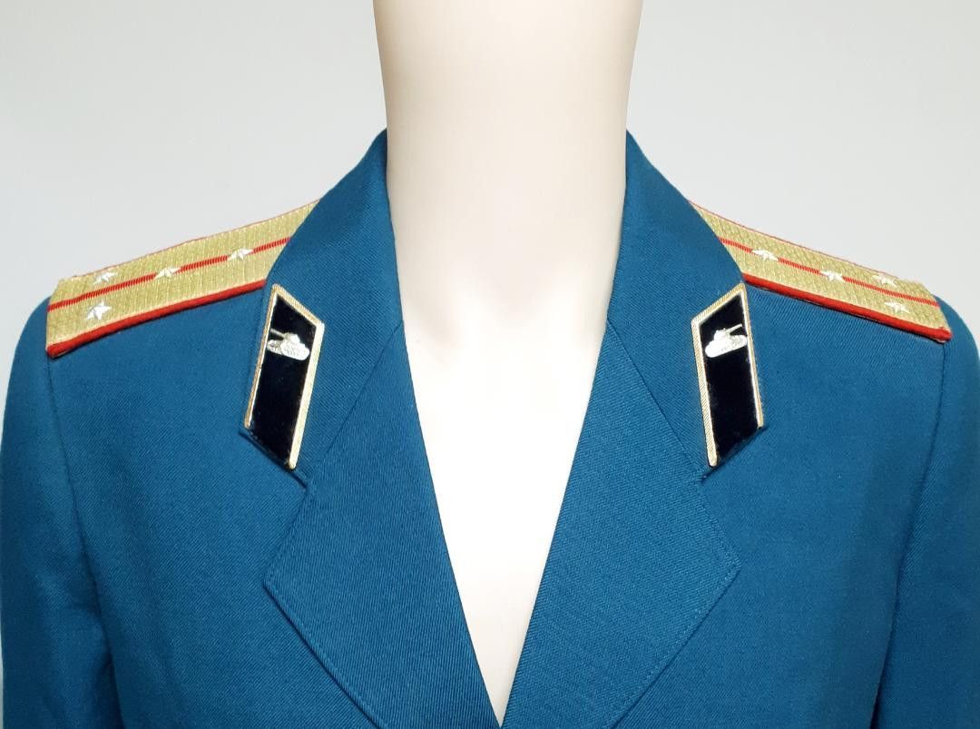 UDSSR Sowjetunion Uniformjacke Hauptmann Gr. 48-4 K 66 * Farbe: petrol (diese wird leider auf den Bildern nicht wiedergegeben) * Größe: 48-4 Zustand: gut - gebraucht mit kleinen Gebrauchsspuren Abbildung ist beispielhaft, Abweichungen kommen vor!