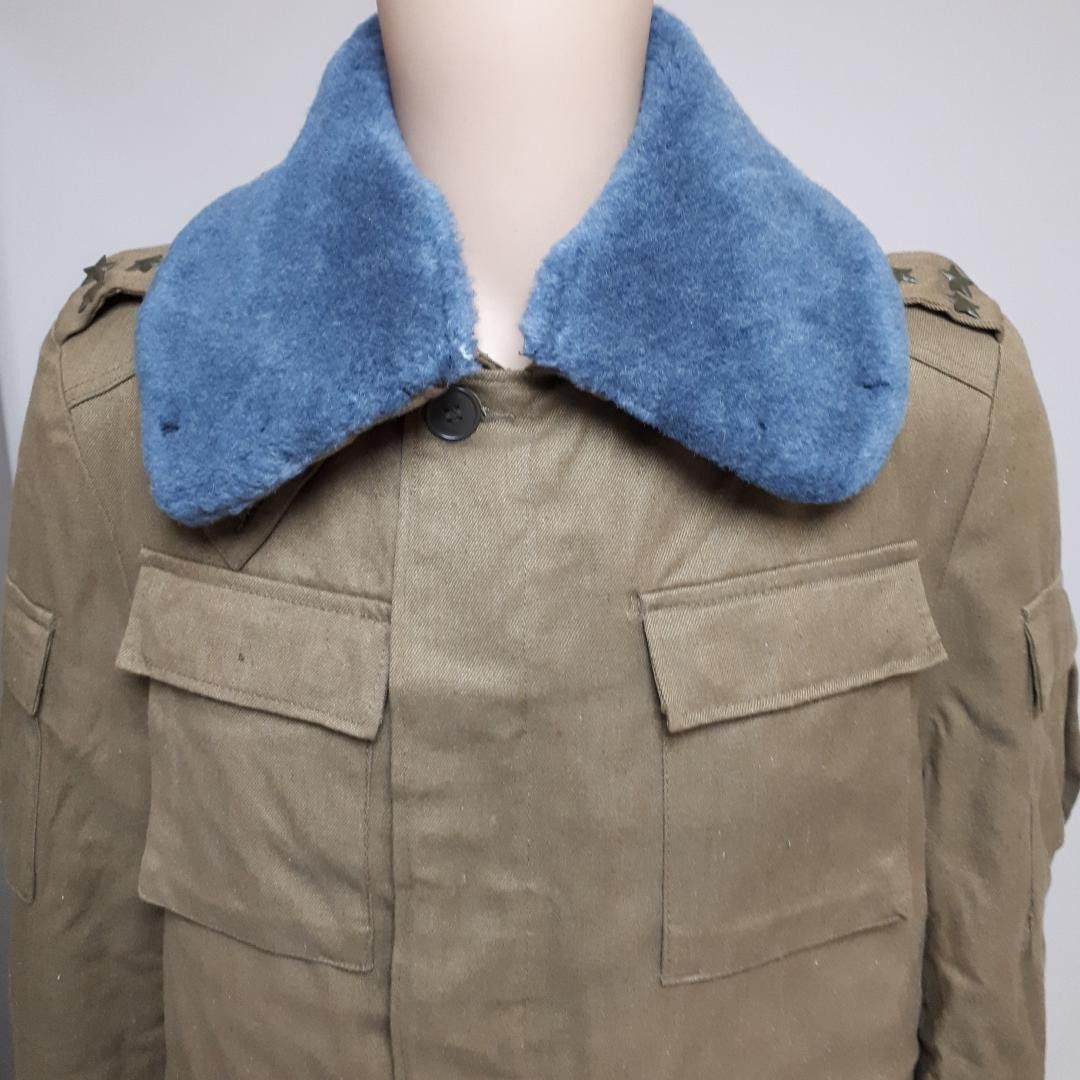 UDSSR Sowjetunion Uniformjacke Wüste Offizier Gr. 44-2 K 97 * Ganzjahresuniformjacke Wüste für Afghanistan * mit abknöpfbarem Pelzkragen * mit flauschigem Innenfutter * 2 Ärmeltaschen mit Klettverschluß * 2 Brust-/und Einschubtaschen mit Knopfverschluß * Größe: 44-2 Zustand: gut - gebraucht mit kleinen Gebrauchsspuren