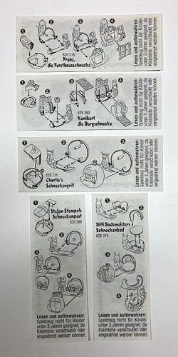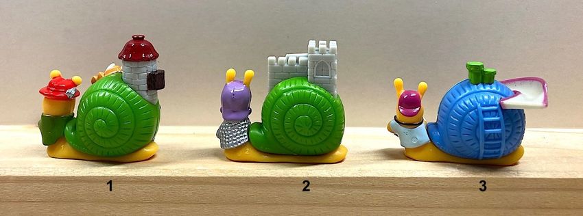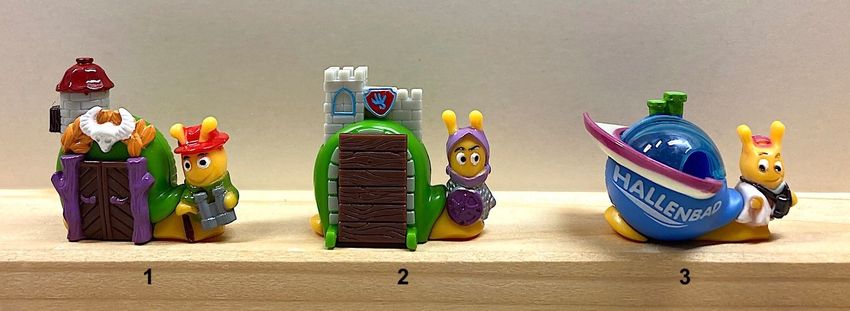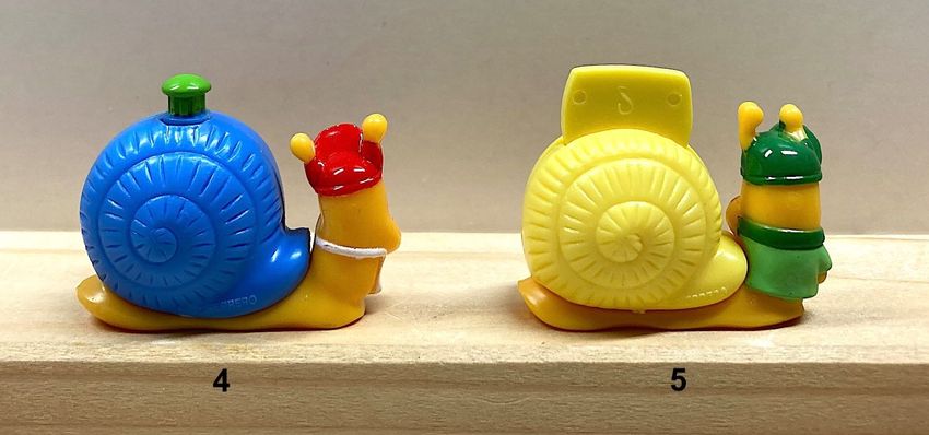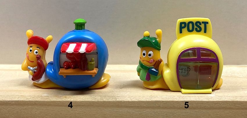 Ich löse meine Sammlungen und Dubletten auf: Ü-Ei Spielfiguren-Serie Neues vom Schneckendorf Deutschland 1998 5 Figuren, fast komplett ohne Farbvarianten + 5 verschiedene BPZ gelistet im O-Ei-A 2020 Spielzeug Seite 757 siehe Bilder zeigen Vorder- und Rückseite der Figuren Gute Erhaltung, ungespielt.