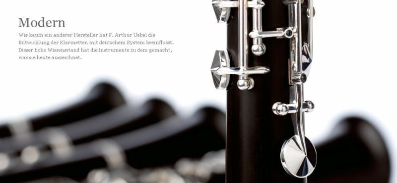 F.A. Uebel 621 in B 21 6 F. Arthur Uebel, Klarinettenbau seit 1936. Auf dem Fundament dieser Tradition werden heute mit modernster Technik Klarinetten gebaut, die eine Vielzahl von Musikern begeistert. Die sorgfältige Verarbeitung und ständige Weiterentwicklung setzt neue Maßstäbe. F. Arthur Uebel K
