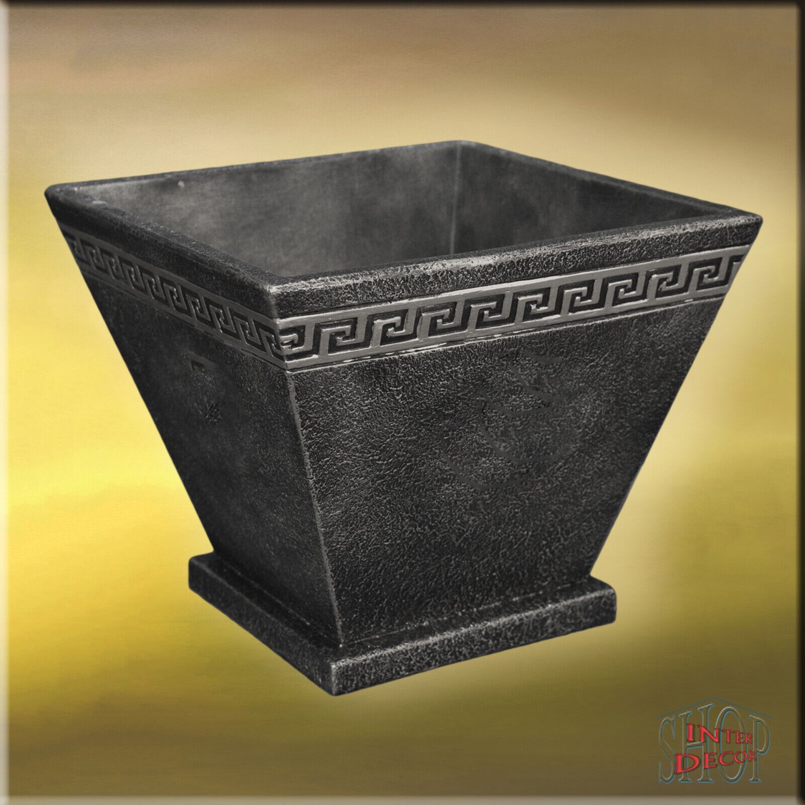 Designer Blumentopf Mäander” 0850 P HANDARBEIT Material : Kunstharz Farbe : Die verfügbare Farben Muster sind unten aufgeführt. Höhe ca : 26 cm Breite ca : 32 cm Tiefe ca : 32 cm Sockel ca : 20 x 20 cm Gewicht ca : 3,5 kg Lieferzeit : 2 bis 5 Wochen Für Innen und Außenbereich !!! Der Blumentop