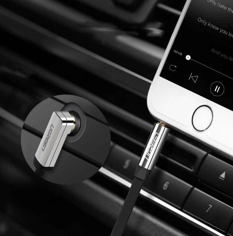 Ugreen Flachwinkelkabel AUX Audiokabel 3,5 mm Miniklinke 0,5 m schwarz