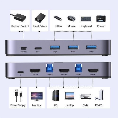 Ugreen HDMI KVM Switch CM664 - 2 in 1 Schwarz