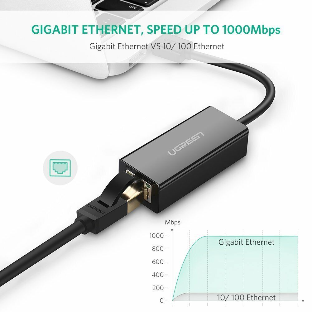 UGREEN USB 3.0 auf RJ45 Gigabit Ethernet Adapter Netzwerk Windows Schwarz