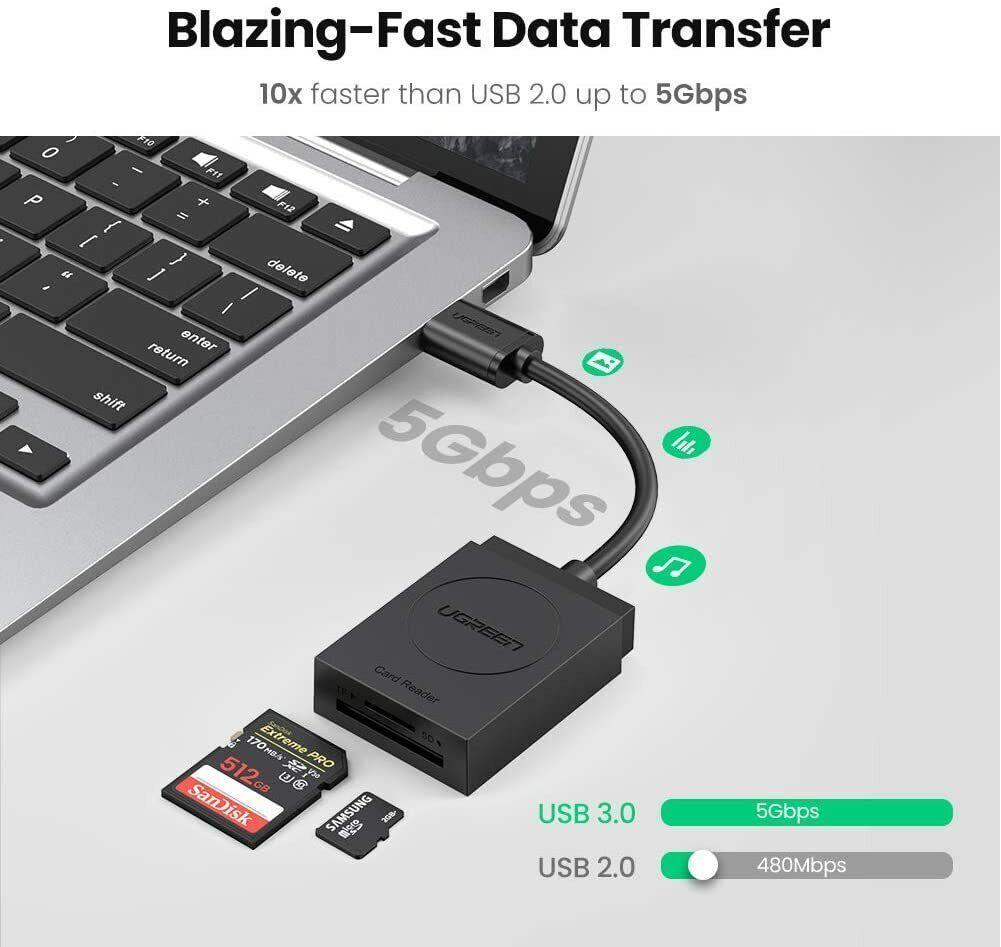 UGREEN USB 3.0 SD TF Kartenleser Adapter 2 Slot Kartenlesegerät SDXC SDHC SD MMC