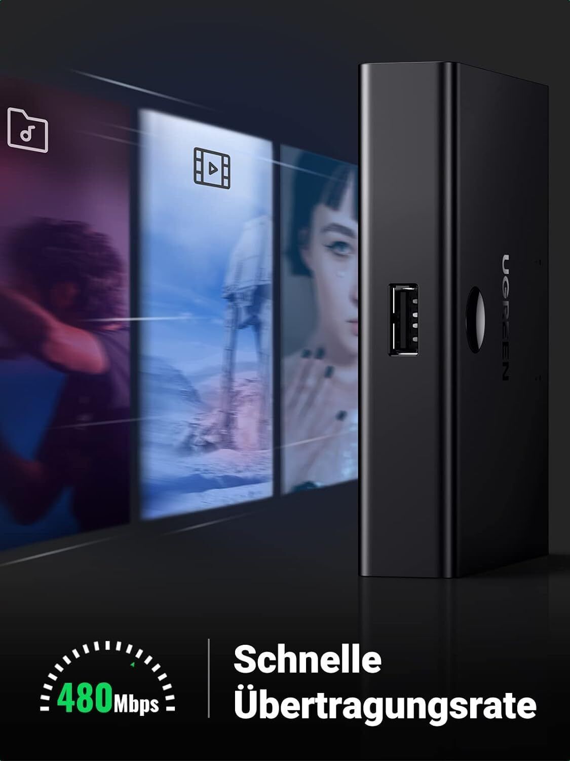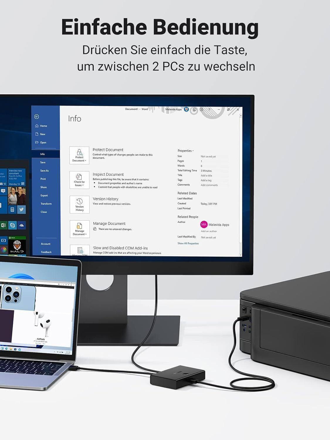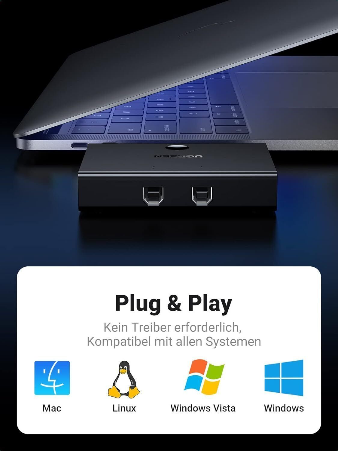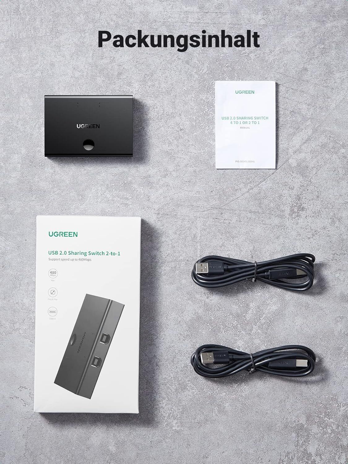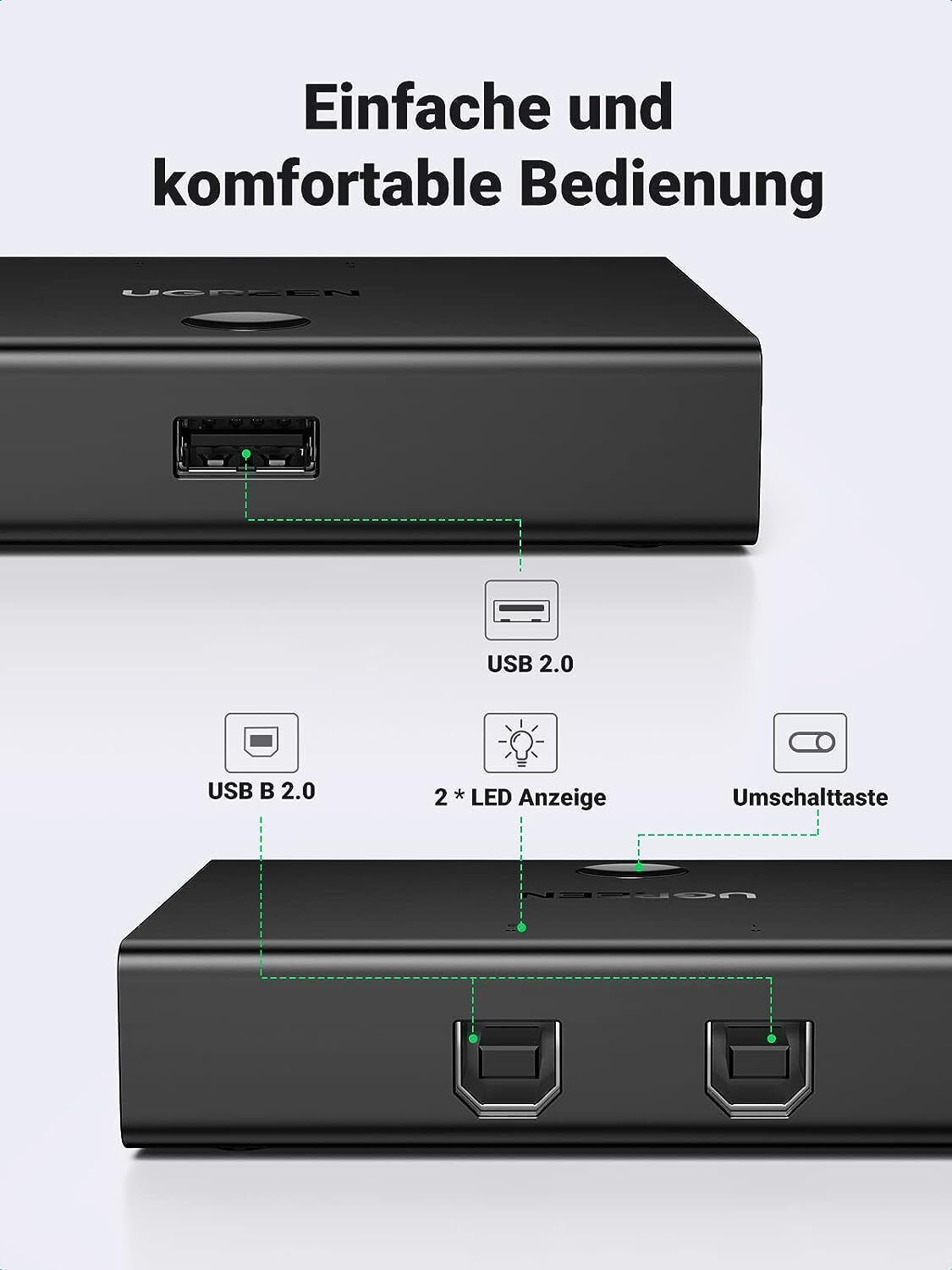 UGREEN USB Switch 2 PC auf 1 USB Gerät Drucker Scanner Maus Umschalter USB A/B