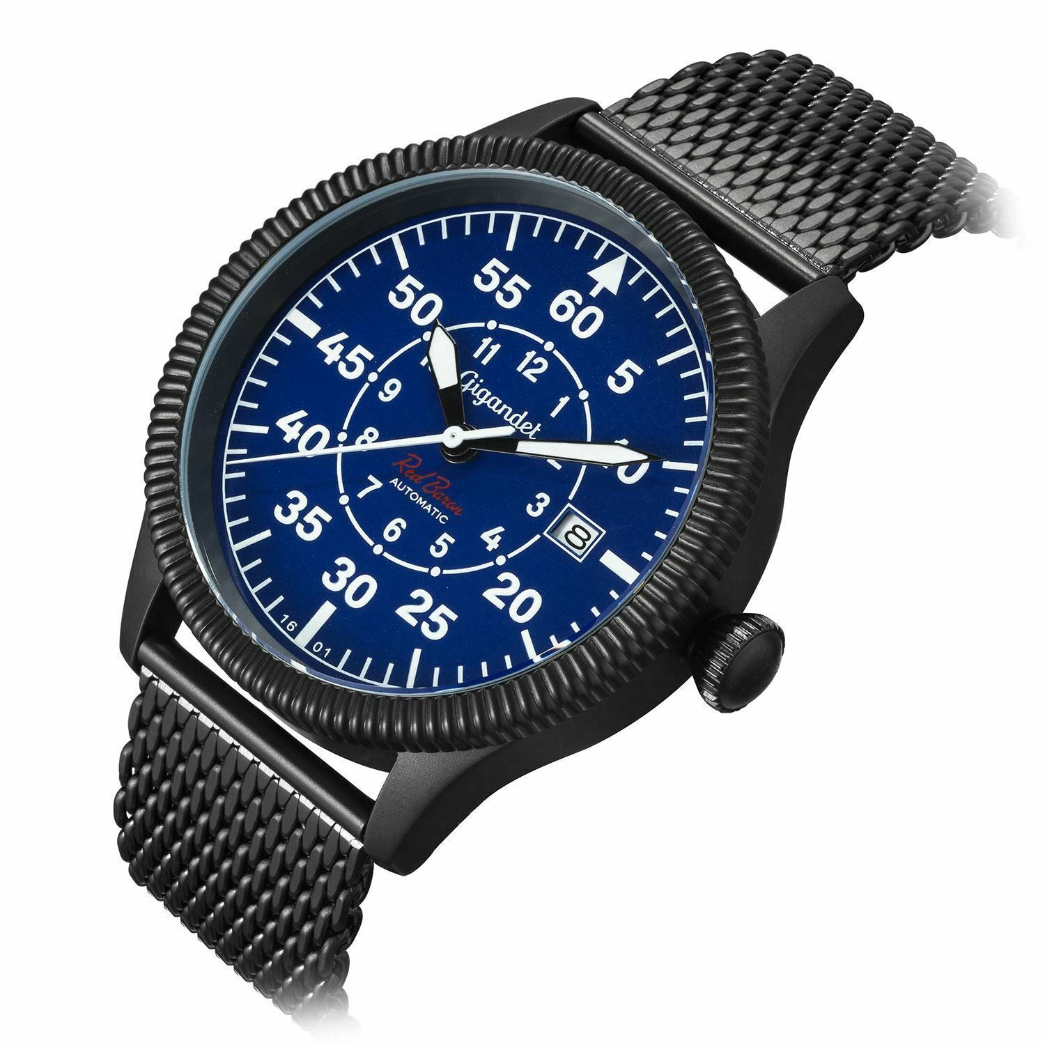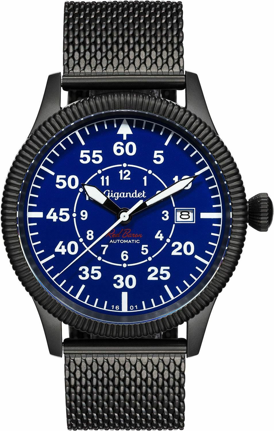 Uhr Herrenuhr Automatikuhr Fliegeruhr Gigandet Red Baron I G8-012 Blau Metallband