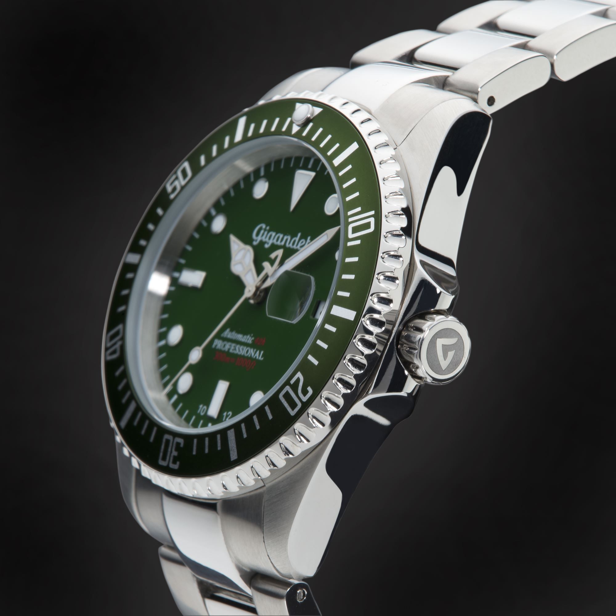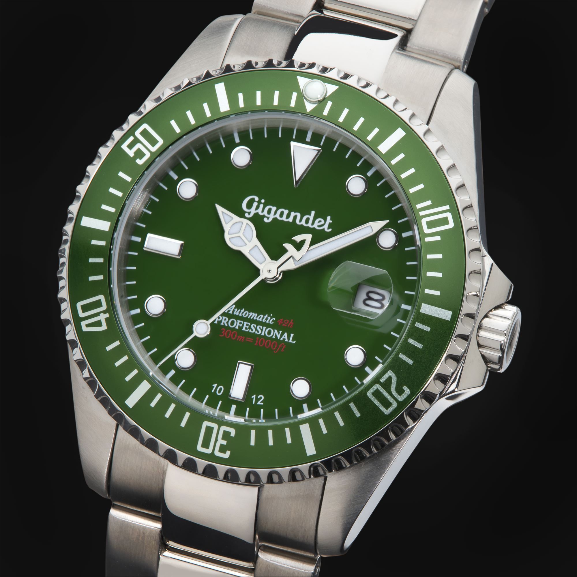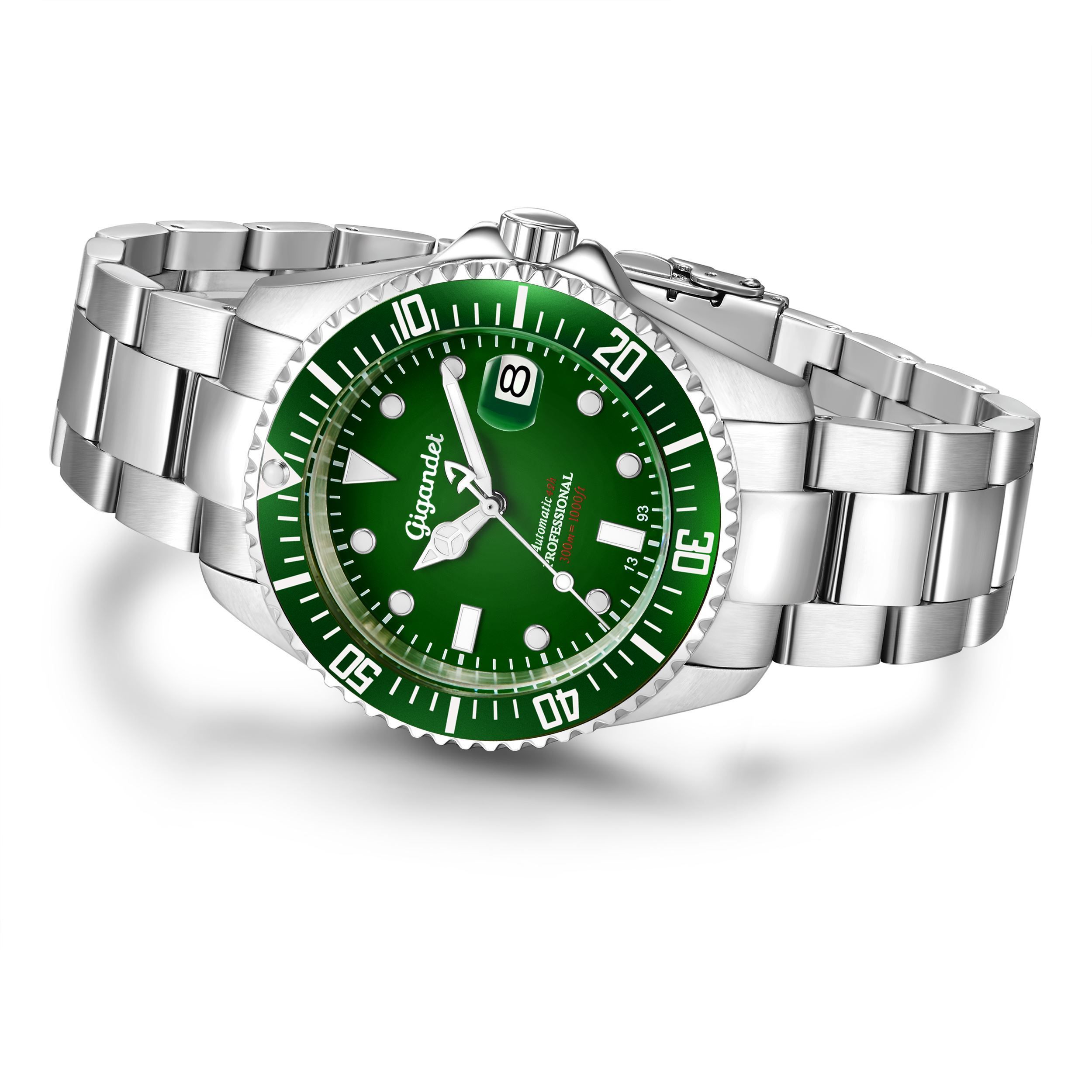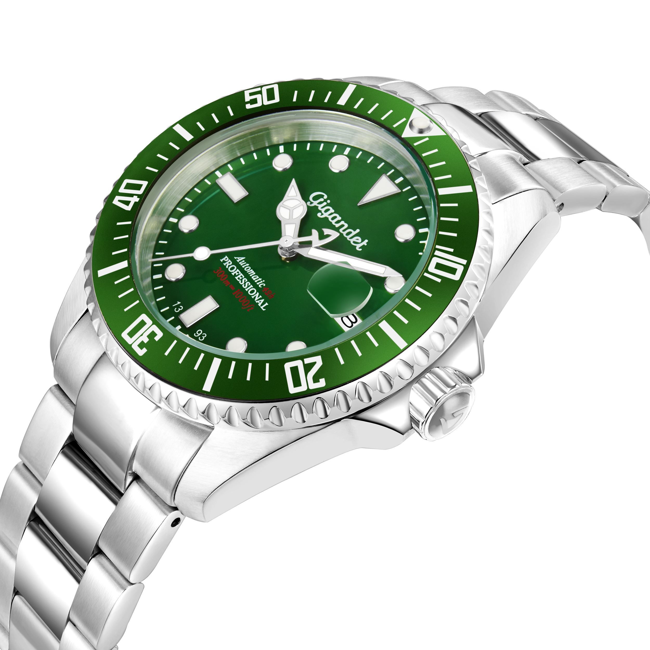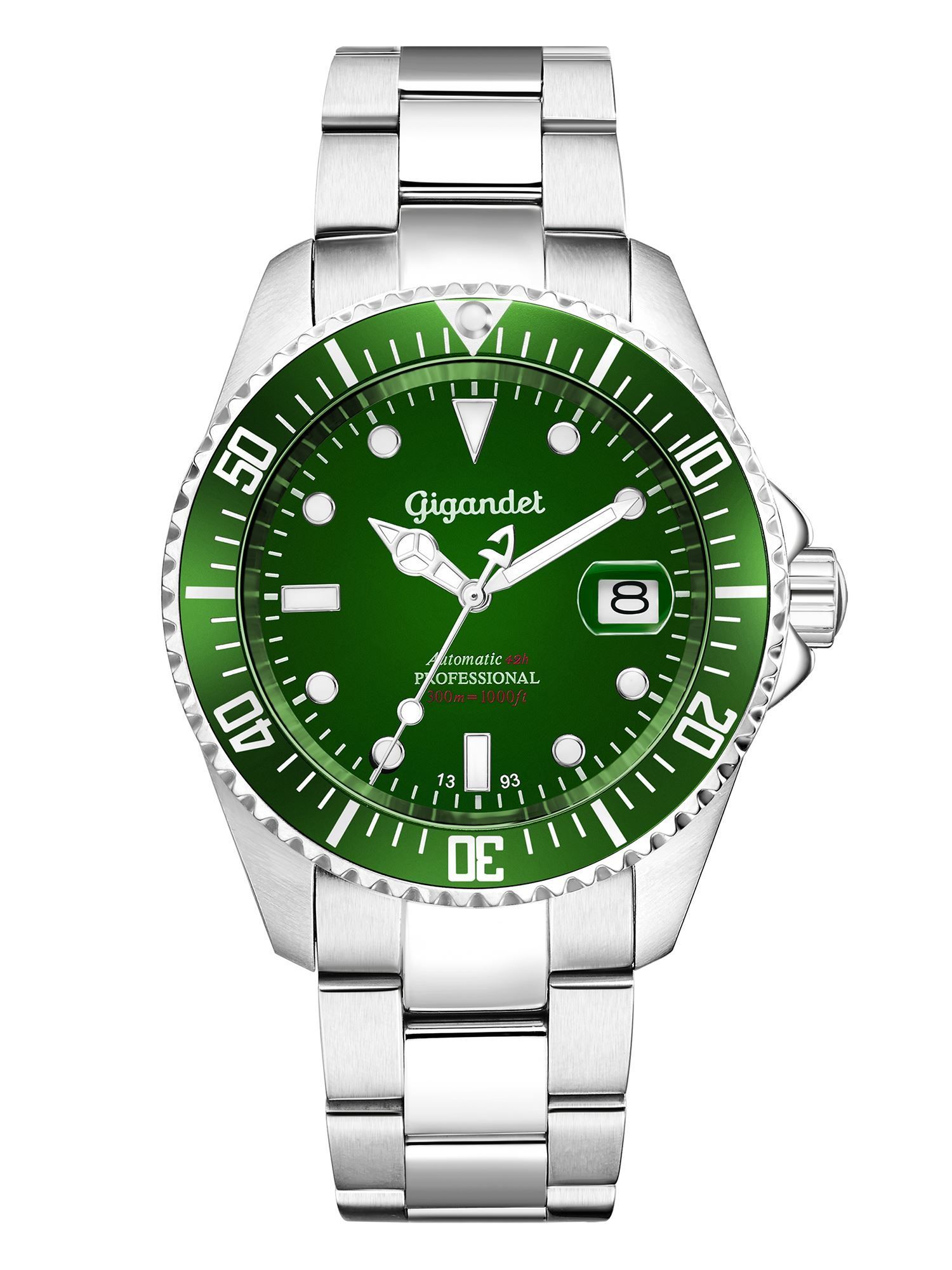 Uhr Herrenuhr Automatikuhr Taucheruhr Gigandet SEA GROUND G2-008 Grün Metallband
