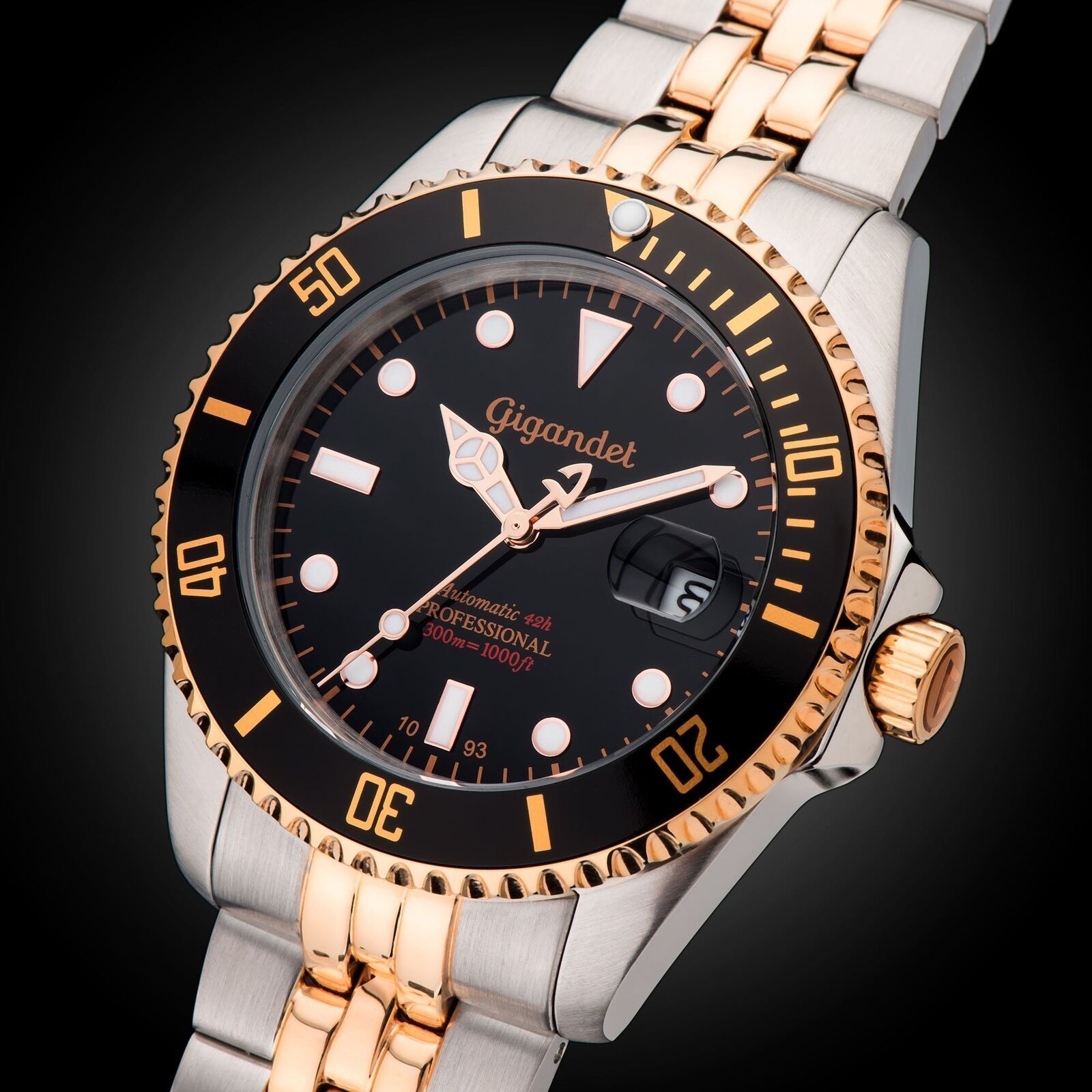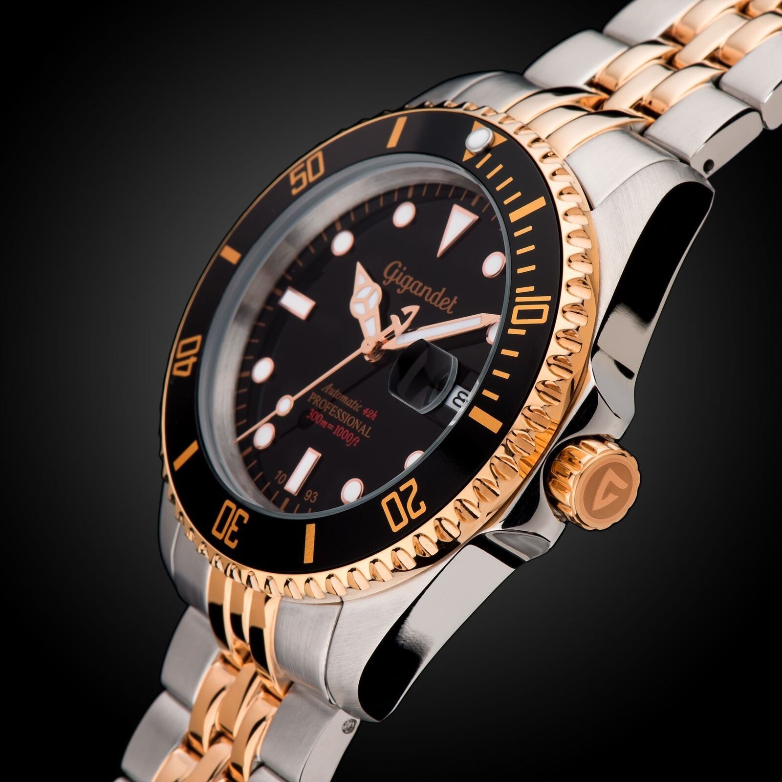 Uhr Herrenuhr Automatikuhr Taucheruhr Gigandet SEA GROUND G2-020 Schwarz Metallband