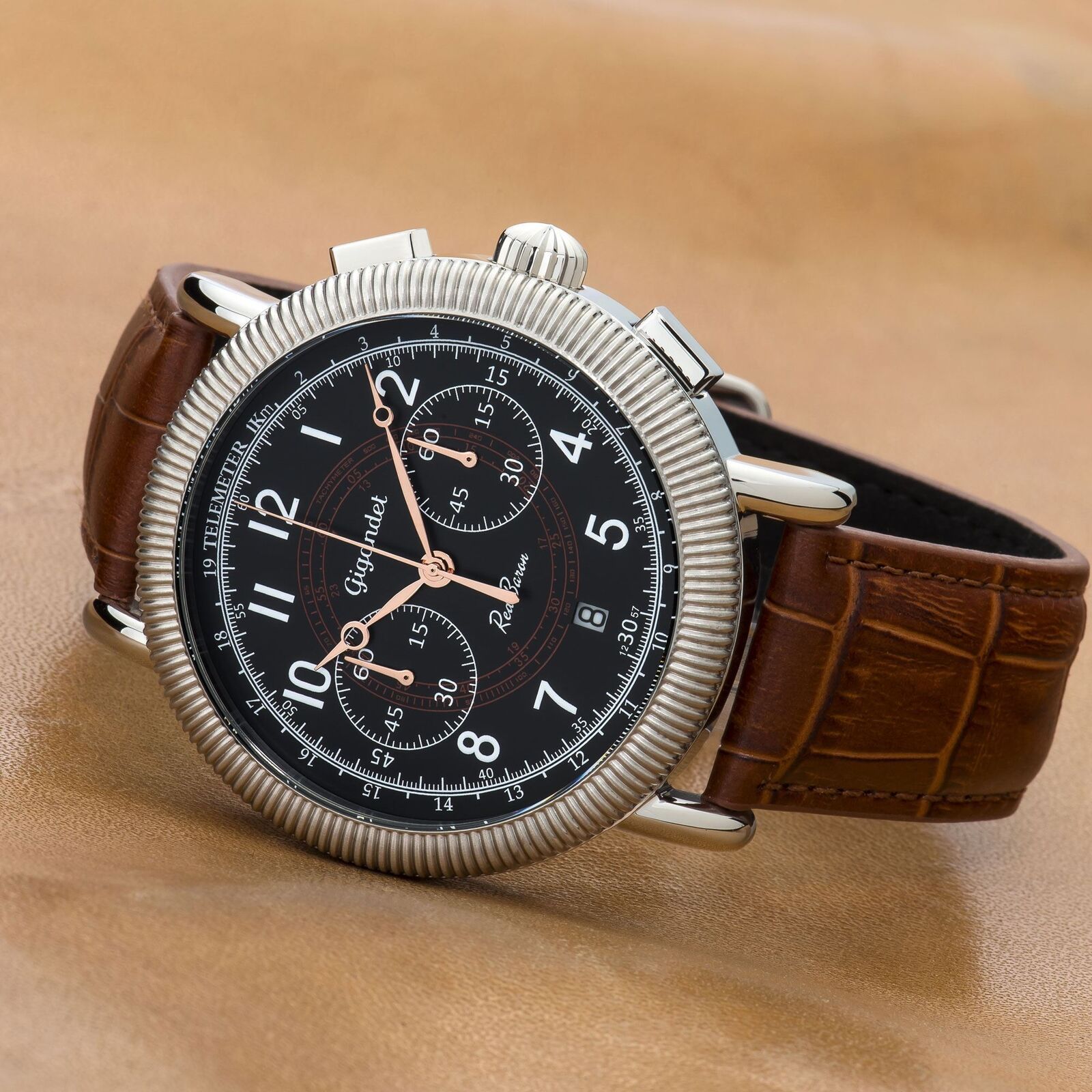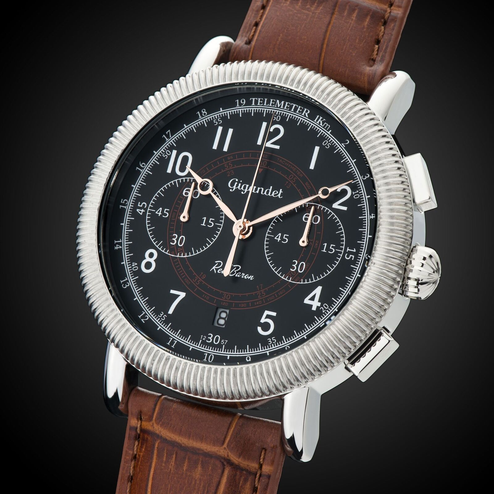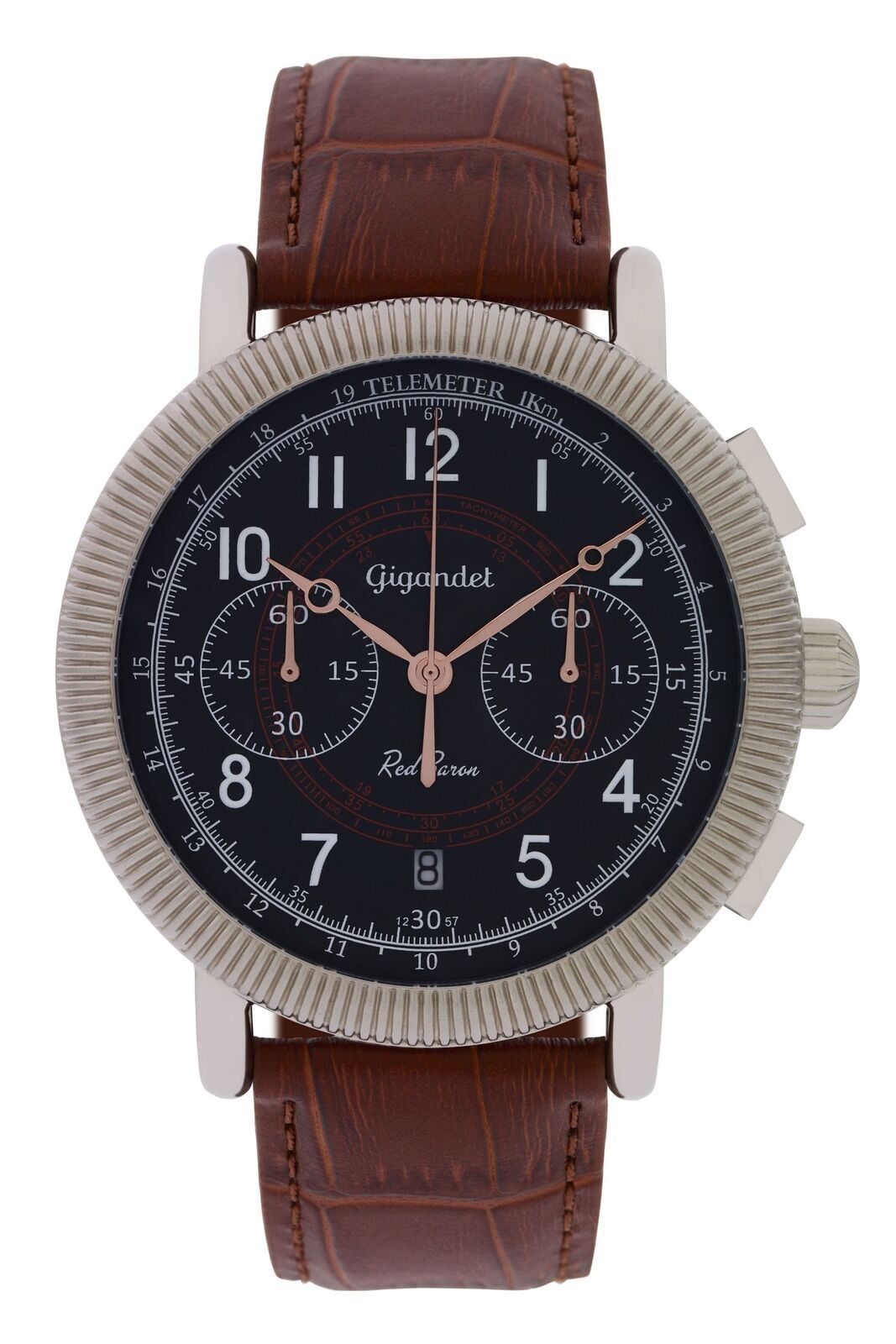 Uhr Herrenuhr Chronograph Fliegeruhr Gigandet Red Baron IV G19-003 Schwarz Lederband