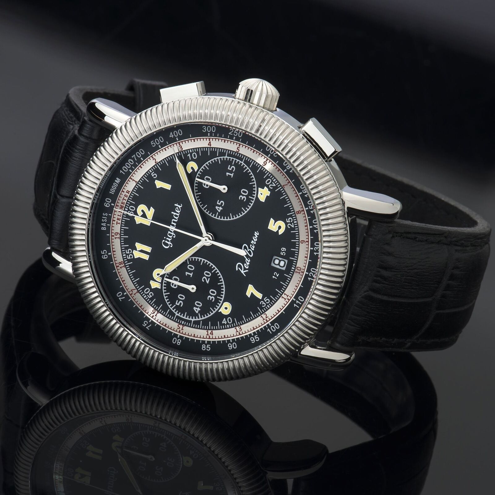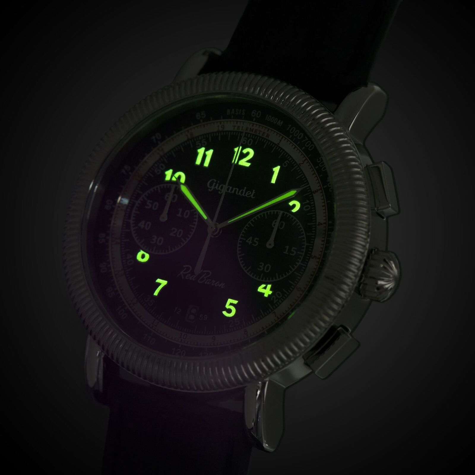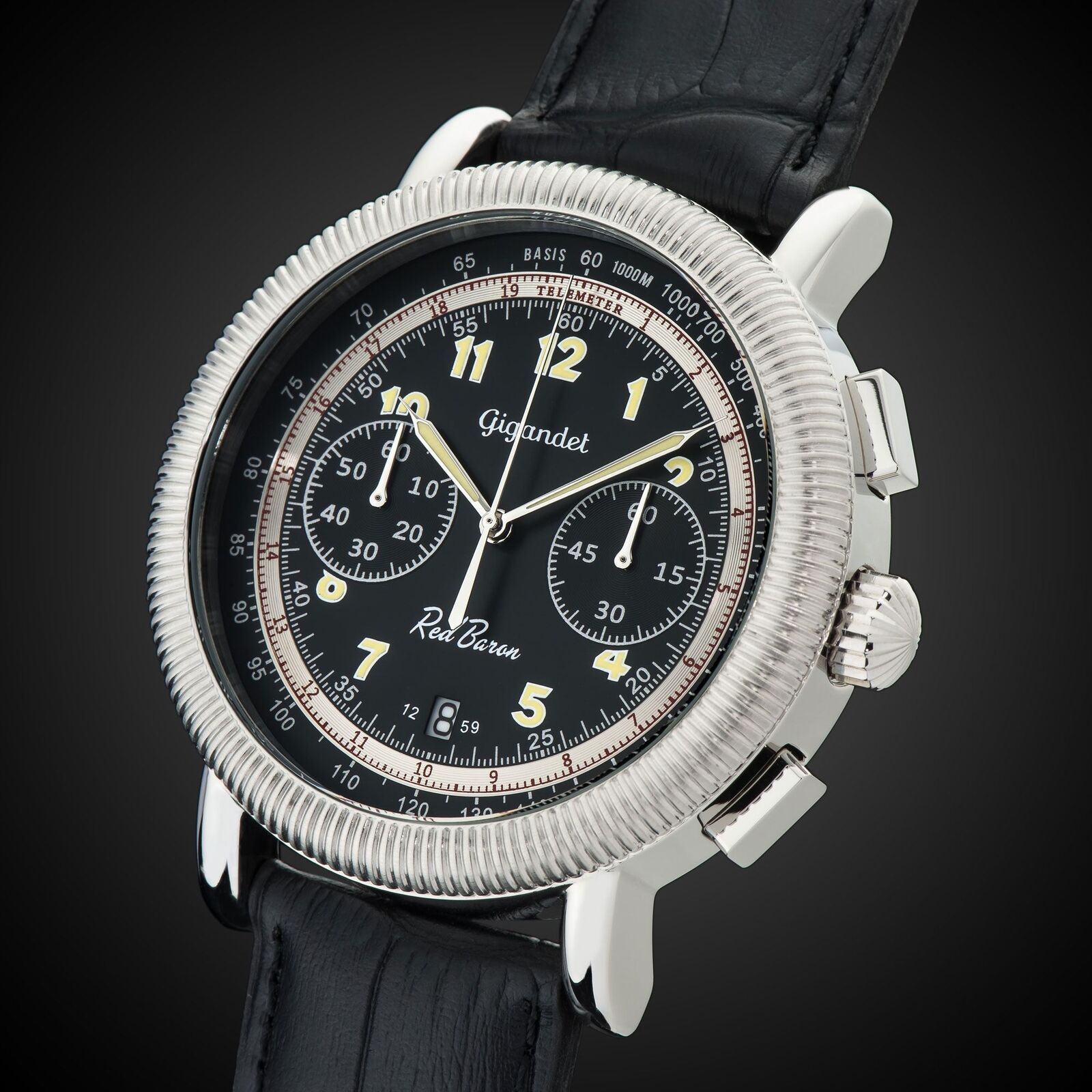 Uhr Herrenuhr Chronograph Fliegeruhr Gigandet Red Baron IV G19-005 Schwarz Lederband