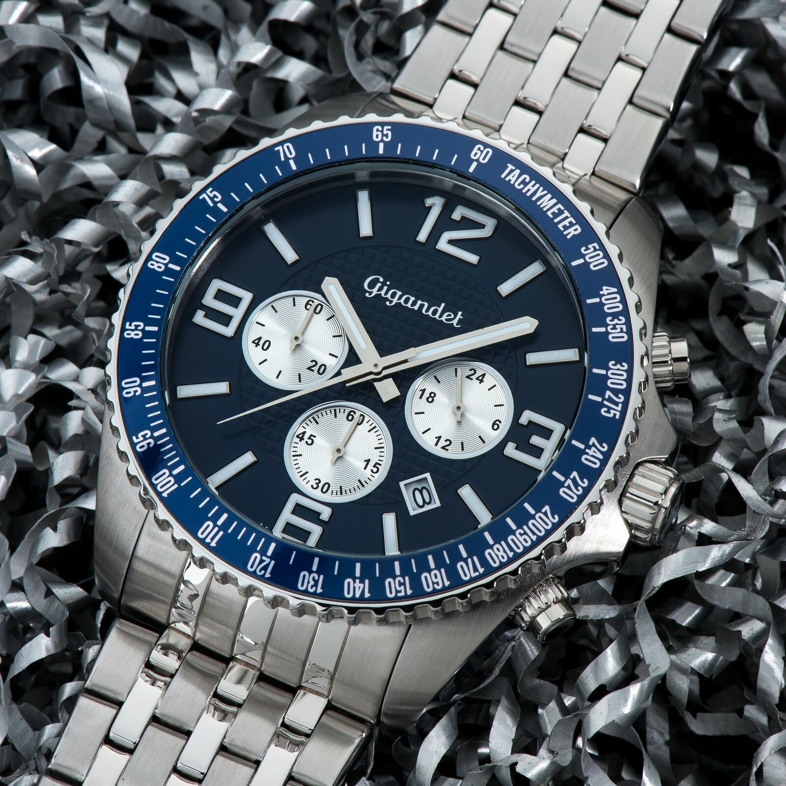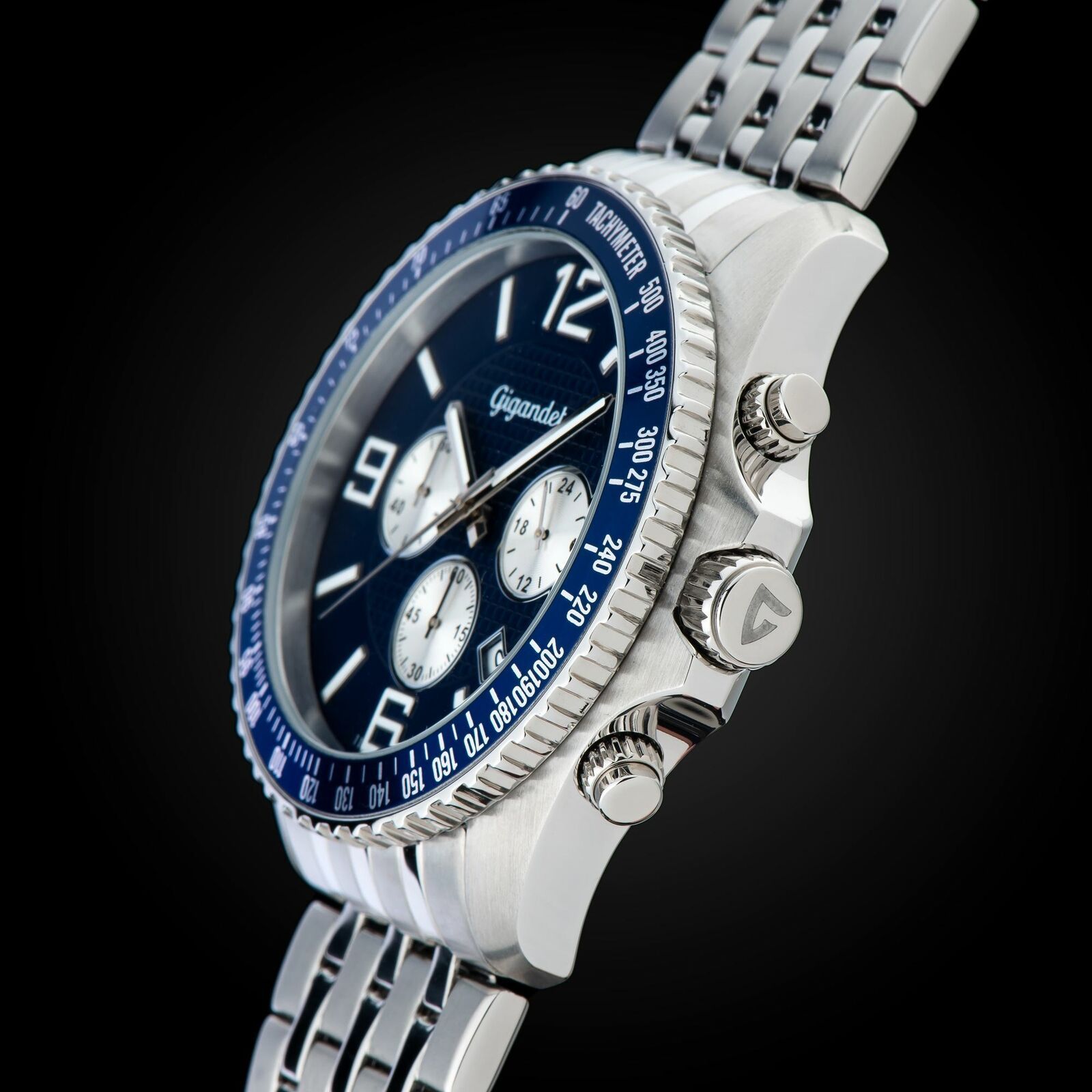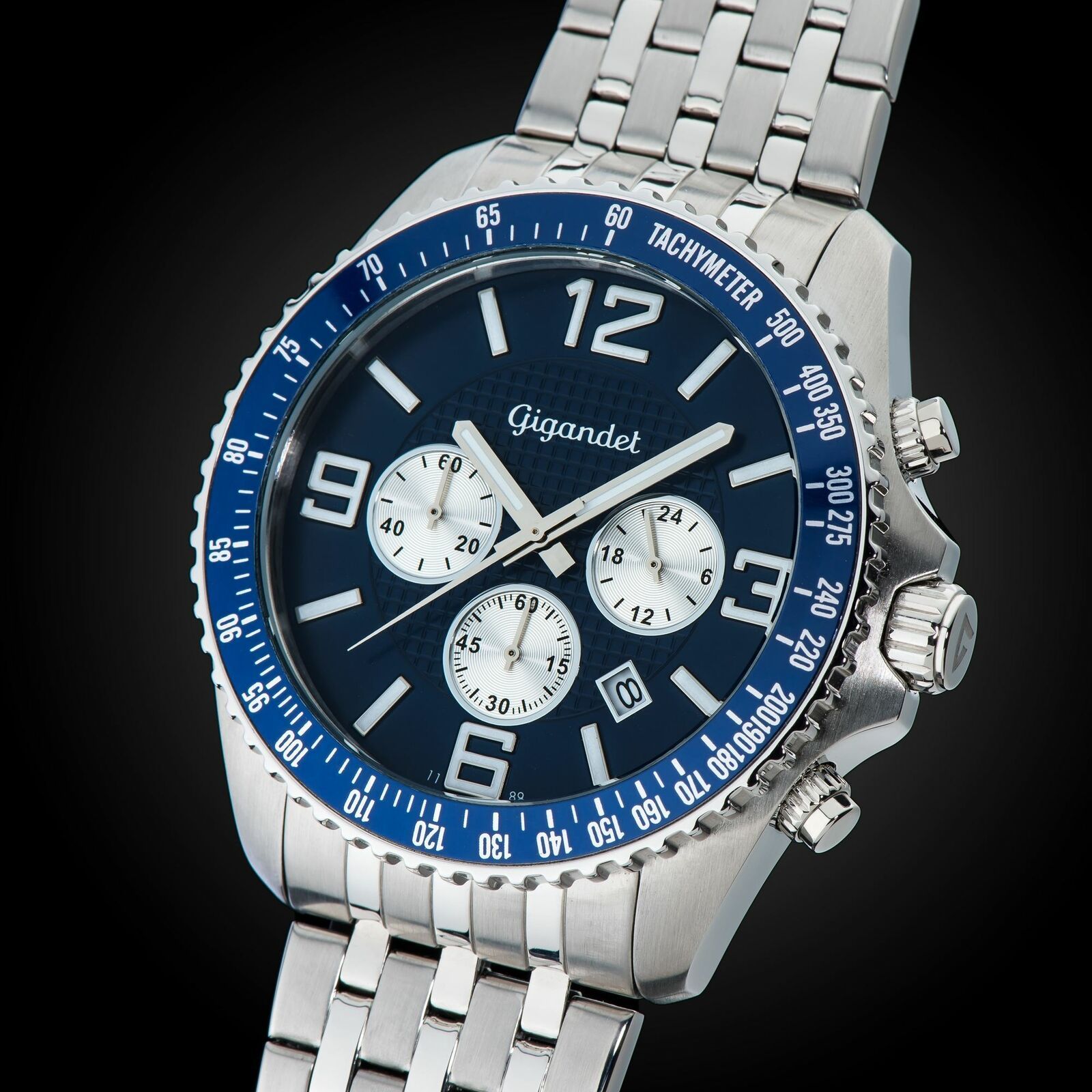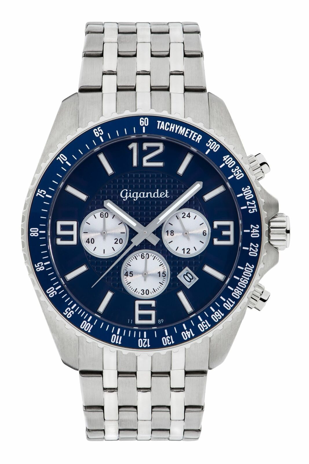 Uhr Herrenuhr Chronograph Gigandet FAST TRACK G12-006 Silber Blau Datum Metallband
