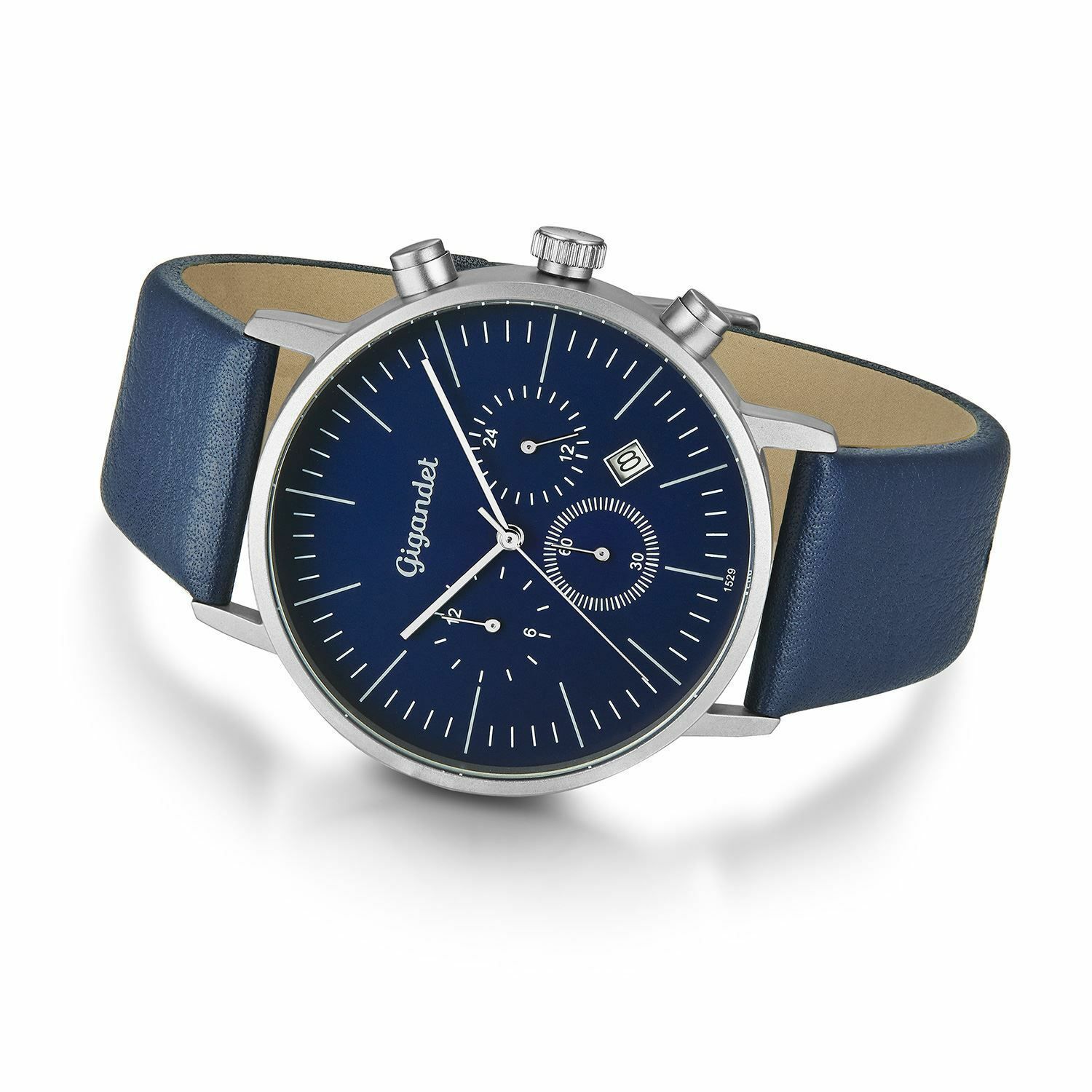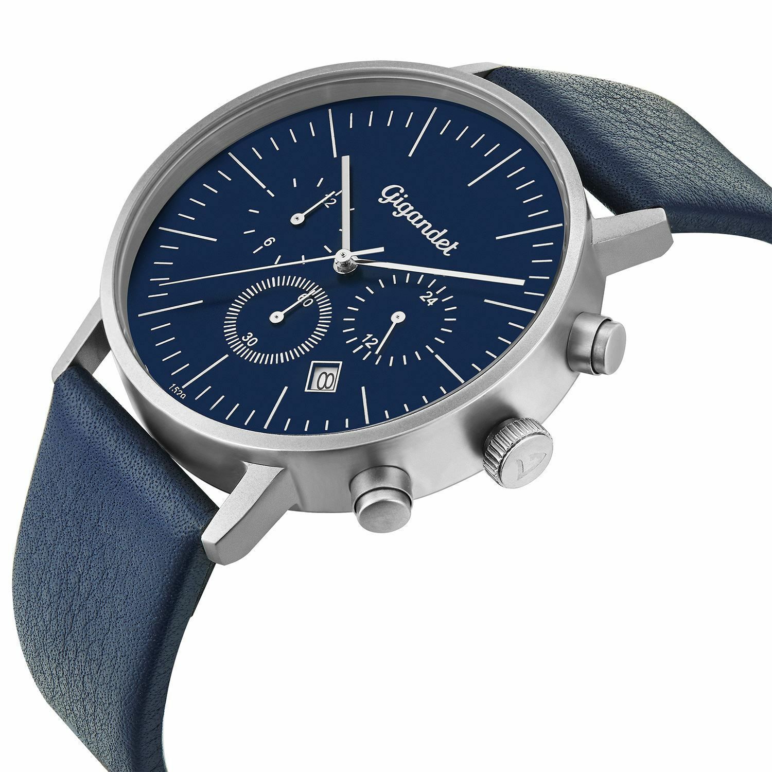 Uhr Herrenuhr Dualtime Dualzeit Gigandet Minimalism III G22-003 Blau Lederband