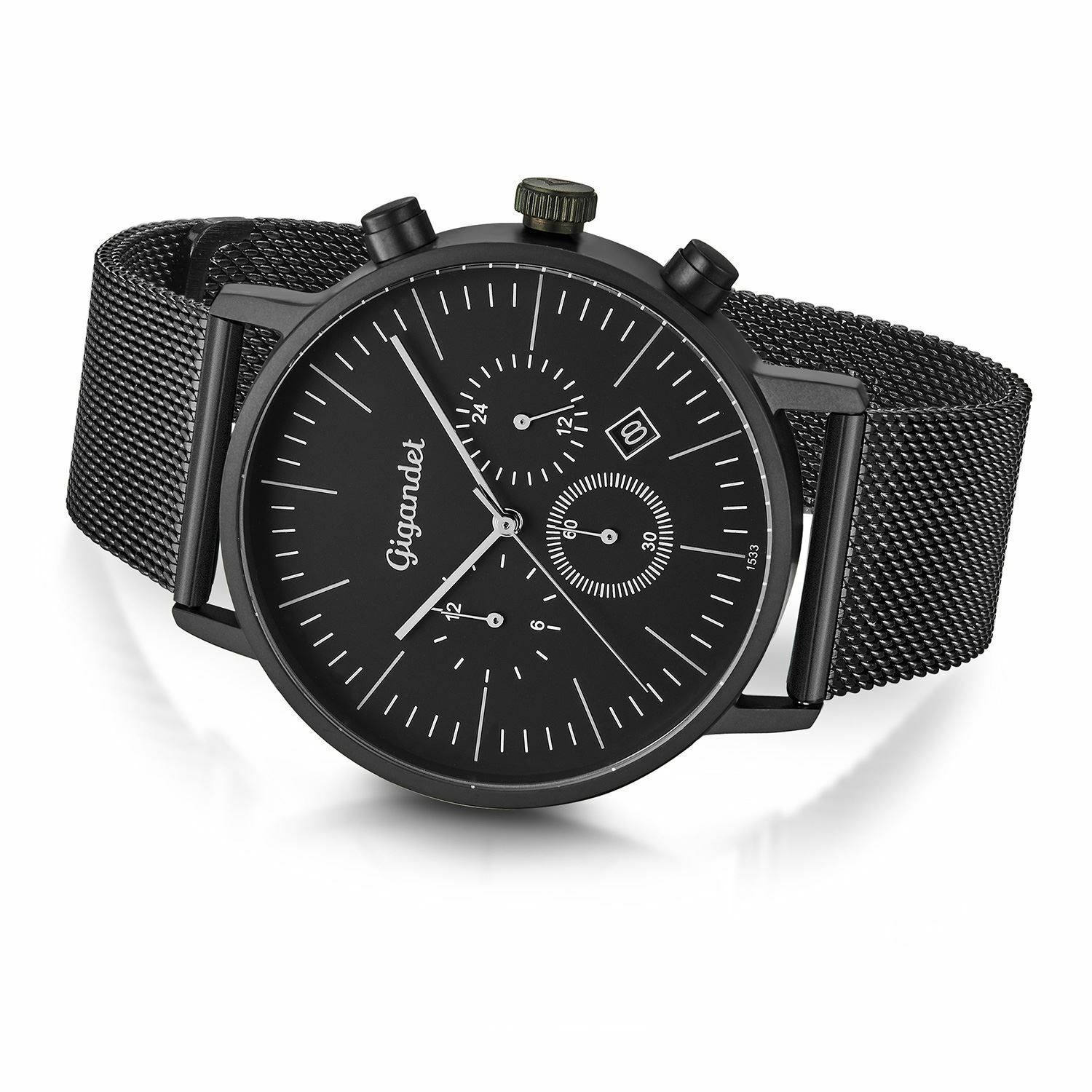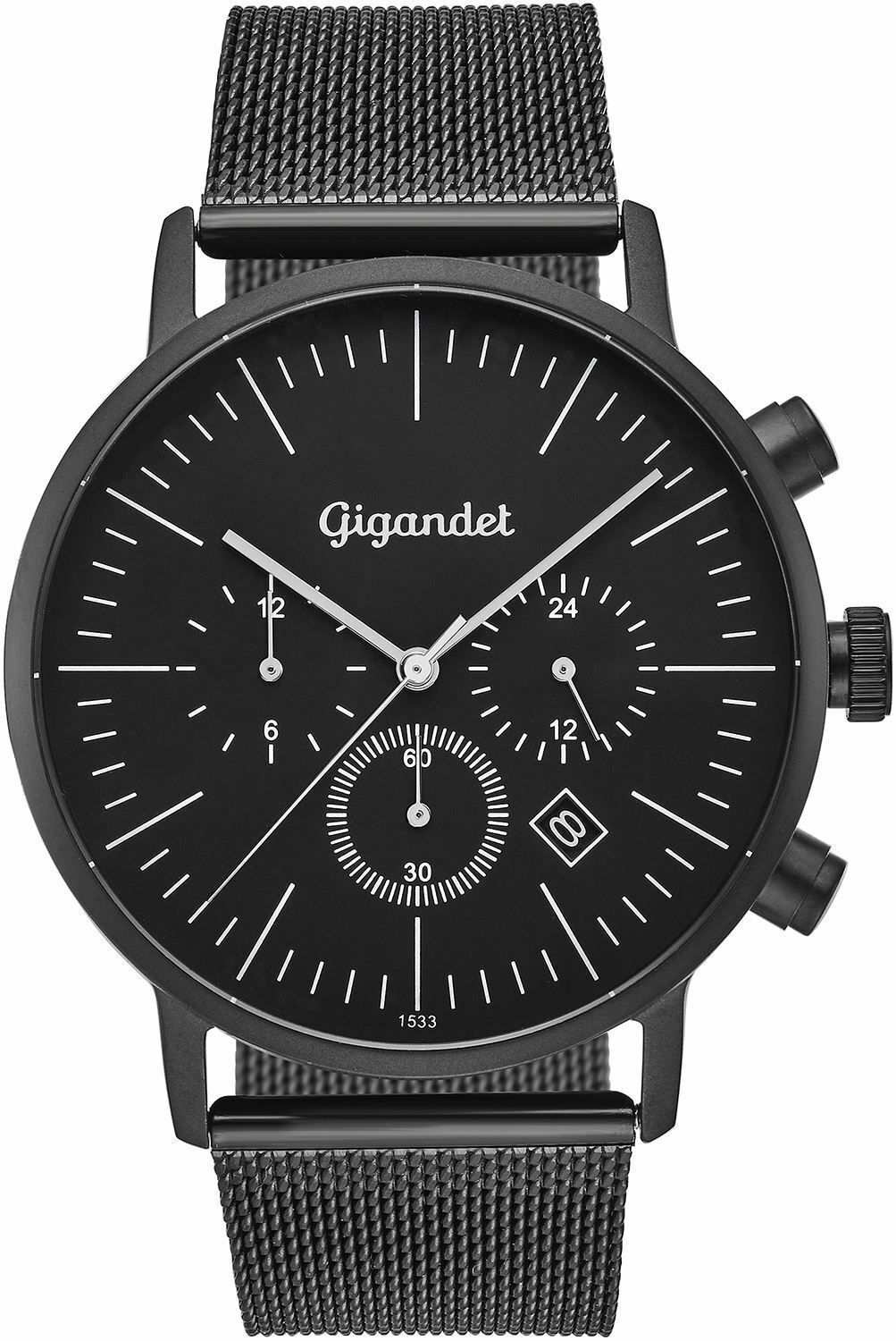 Uhr Herrenuhr Dualtime Dualzeit Gigandet Minimalism III G22-007 Schwarz Metallband