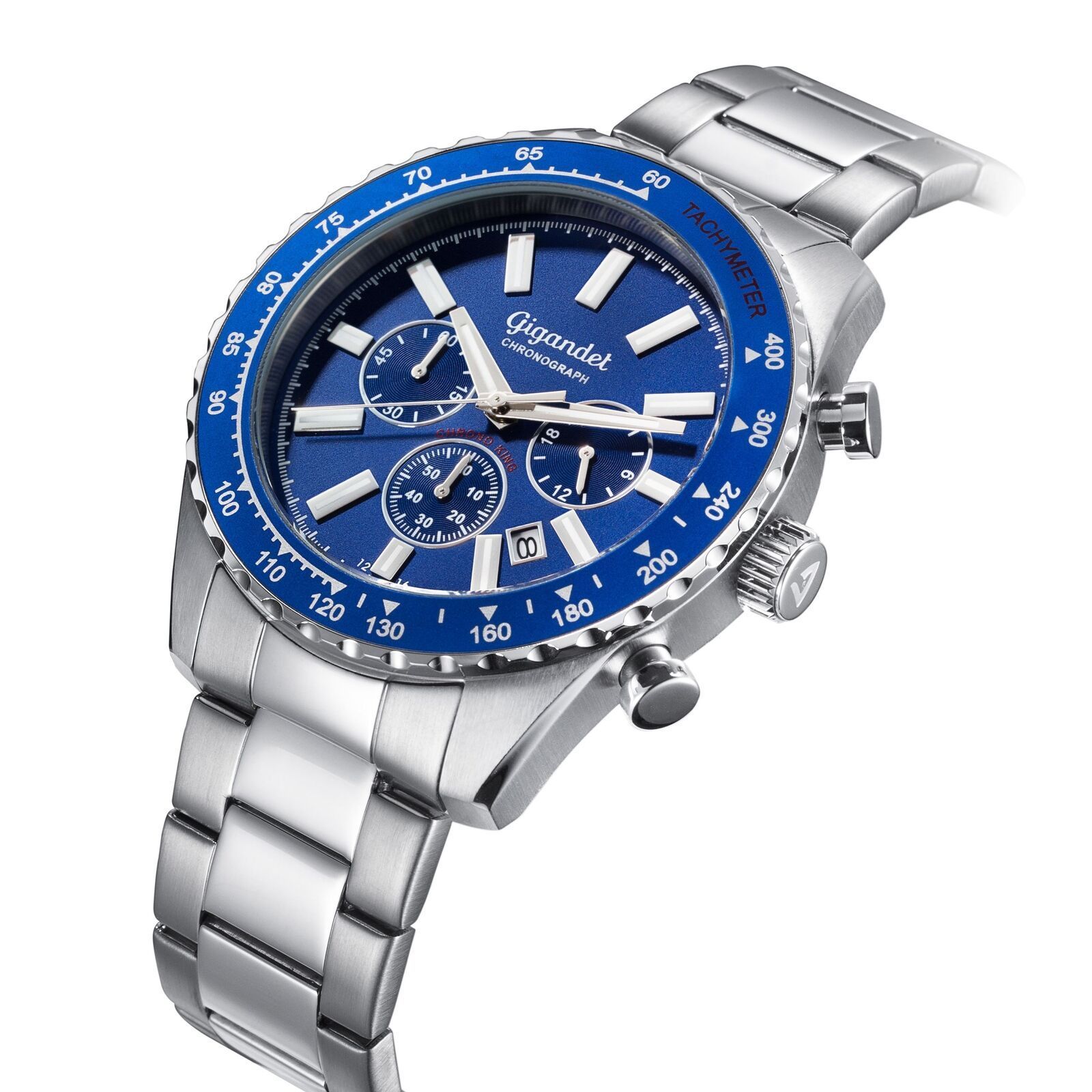 Uhr Herrenuhr Quarzuhr Chronograph Gigandet Chrono King G28-003 Blau Metallband