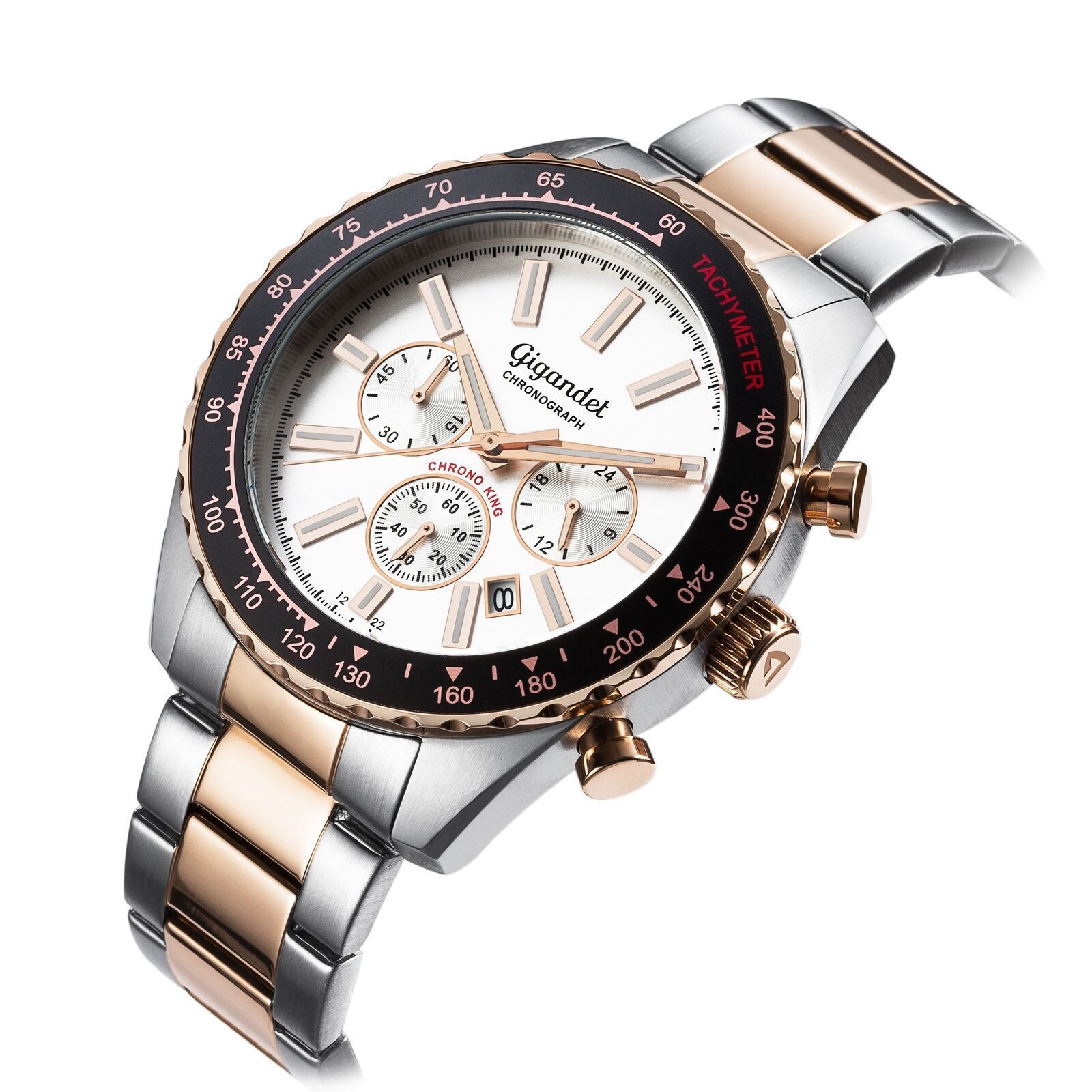 Uhr Herrenuhr Quarzuhr Chronograph Gigandet Chrono King G28-009 Rotgold Metallband