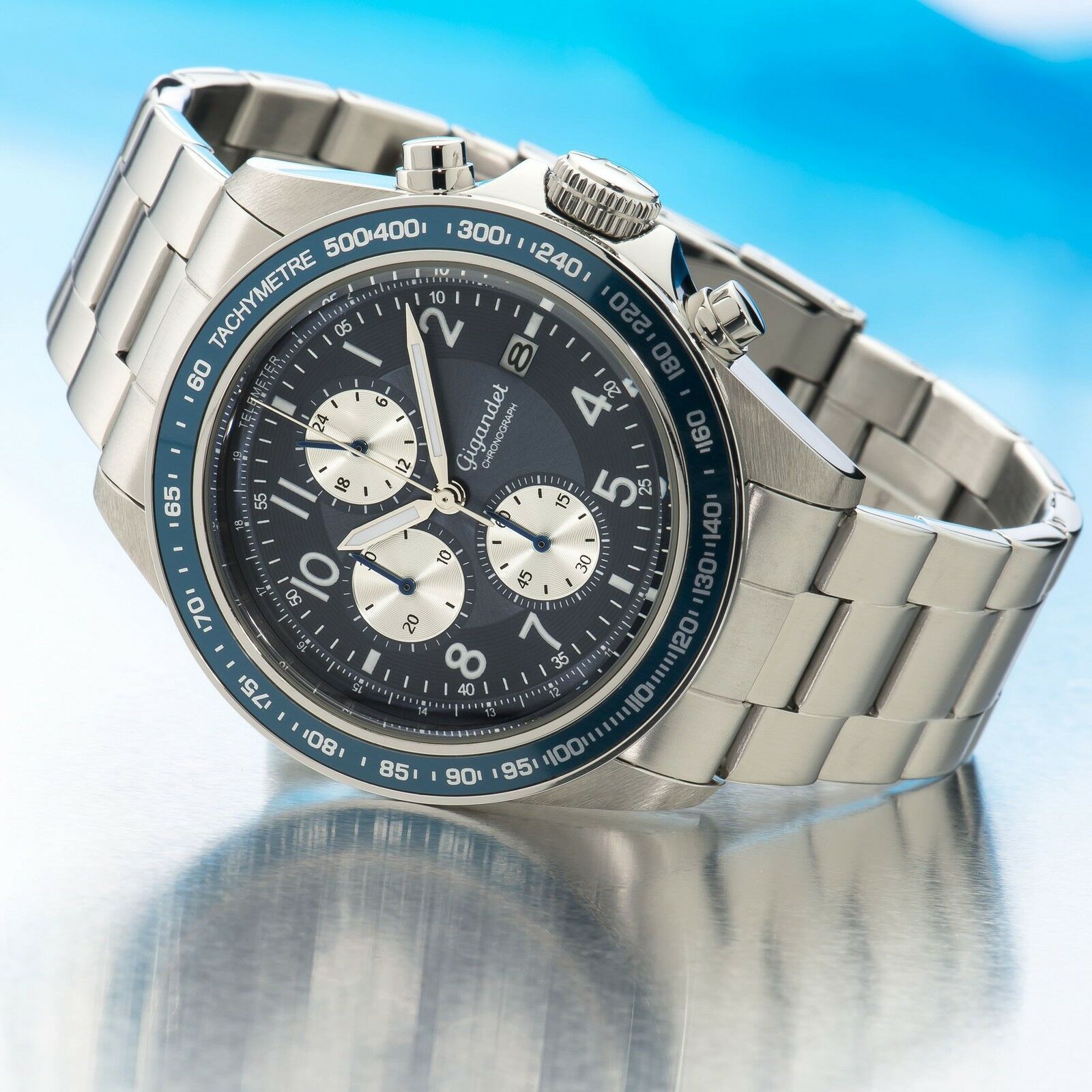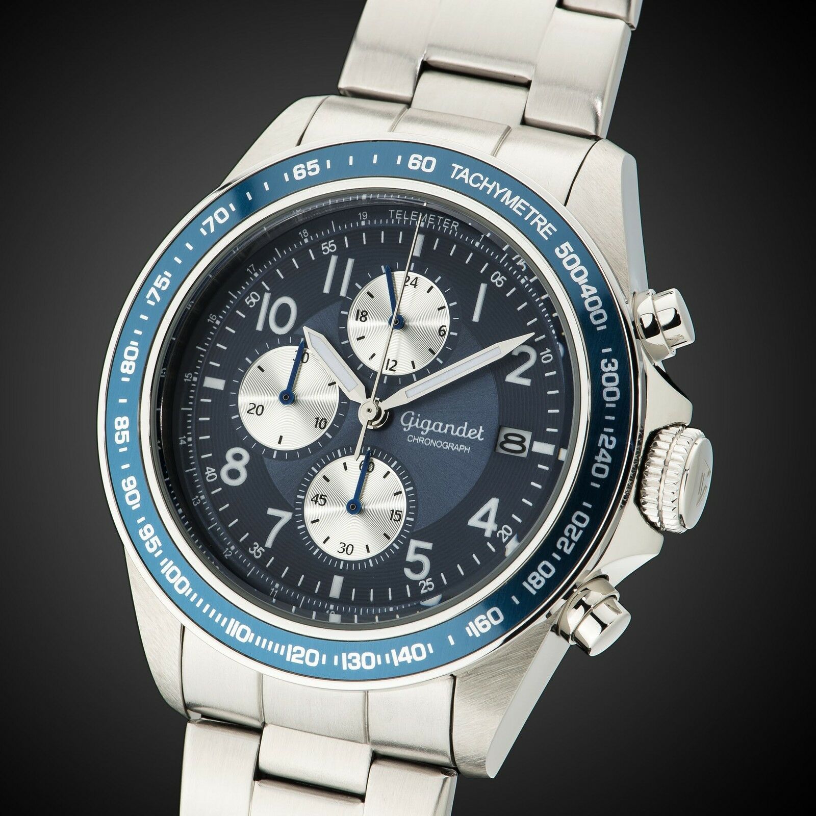 Uhr Herrenuhr Quarzuhr Chronograph Gigandet Racetrack G24-004 Blau Metallband