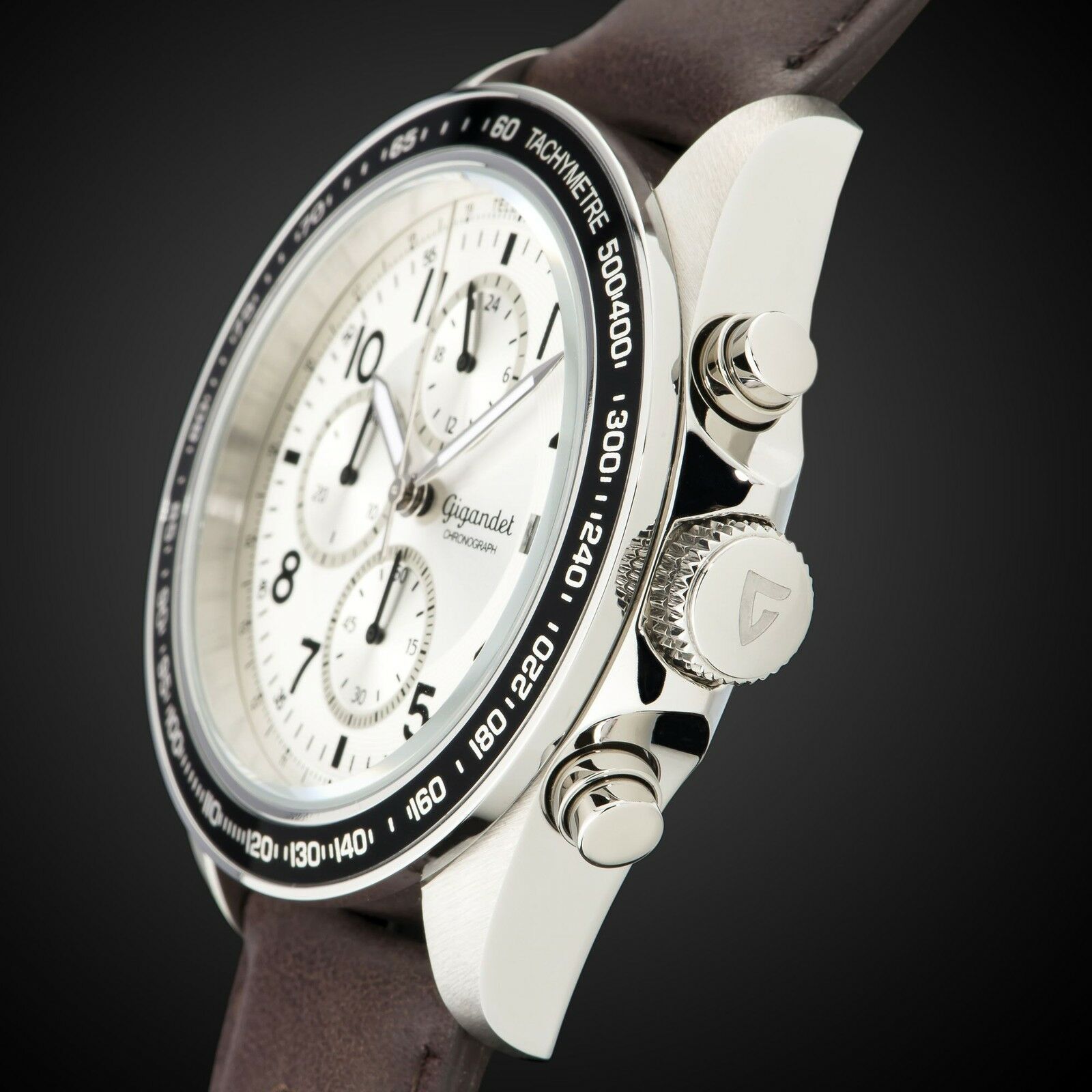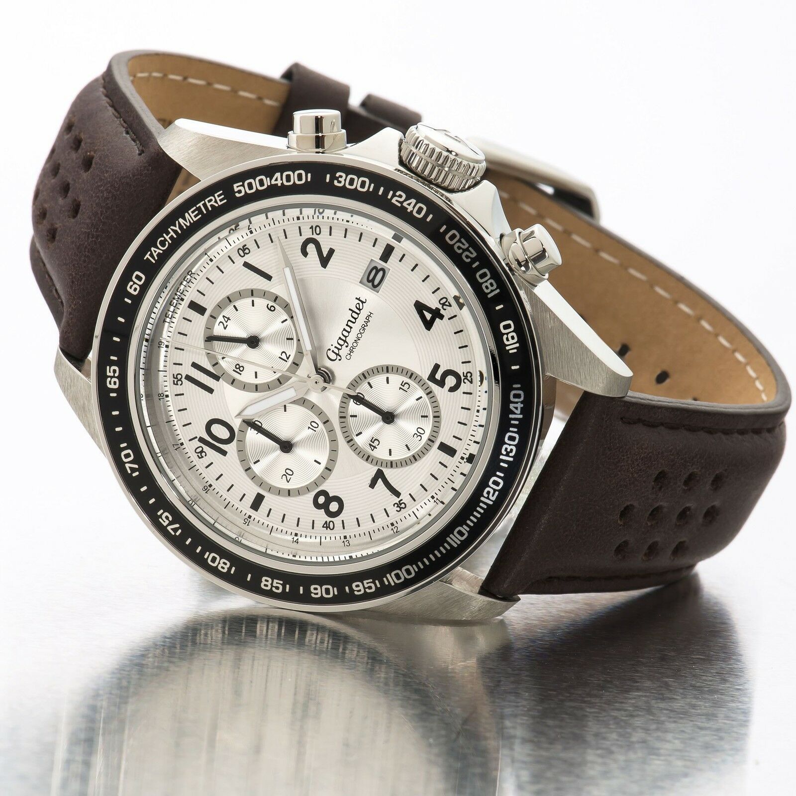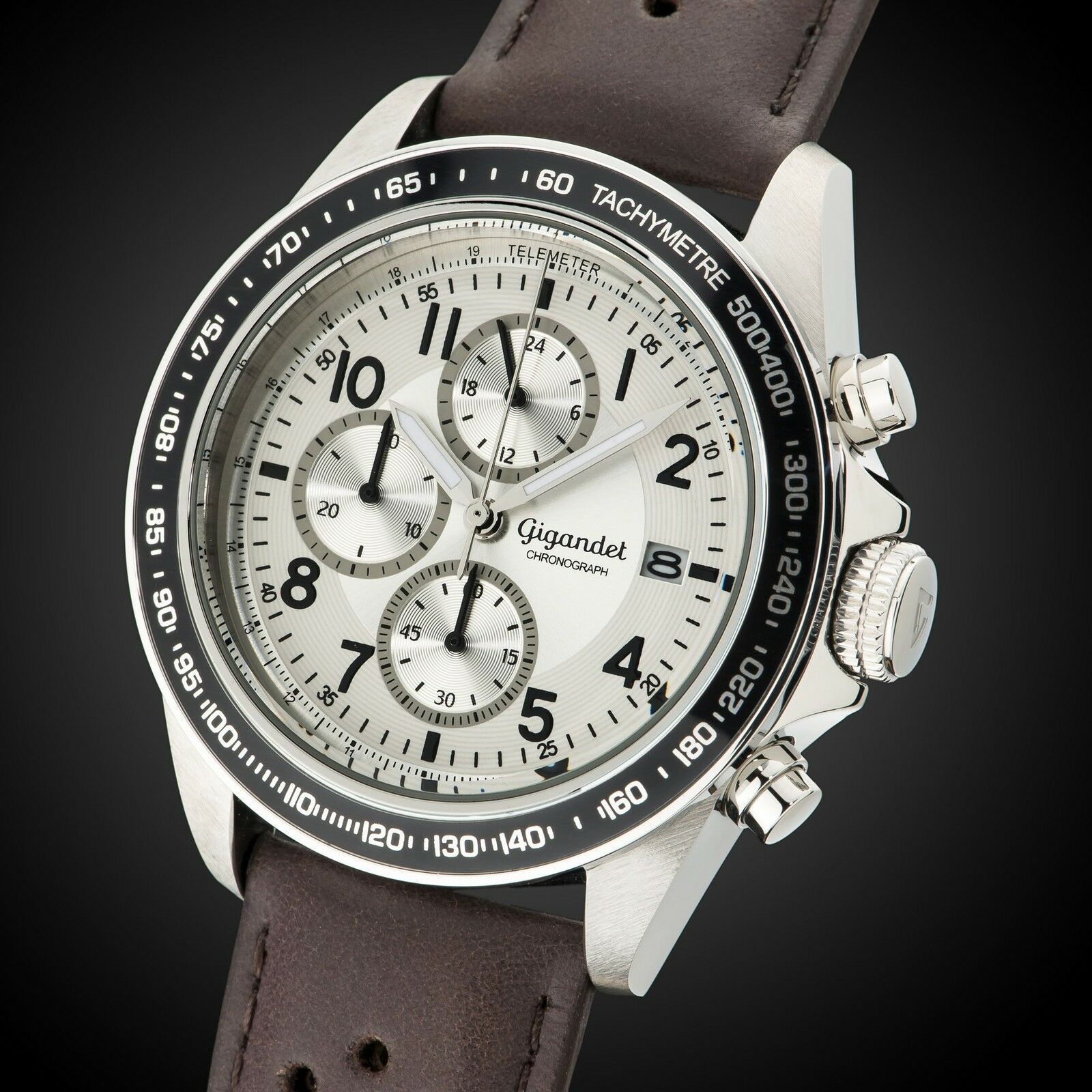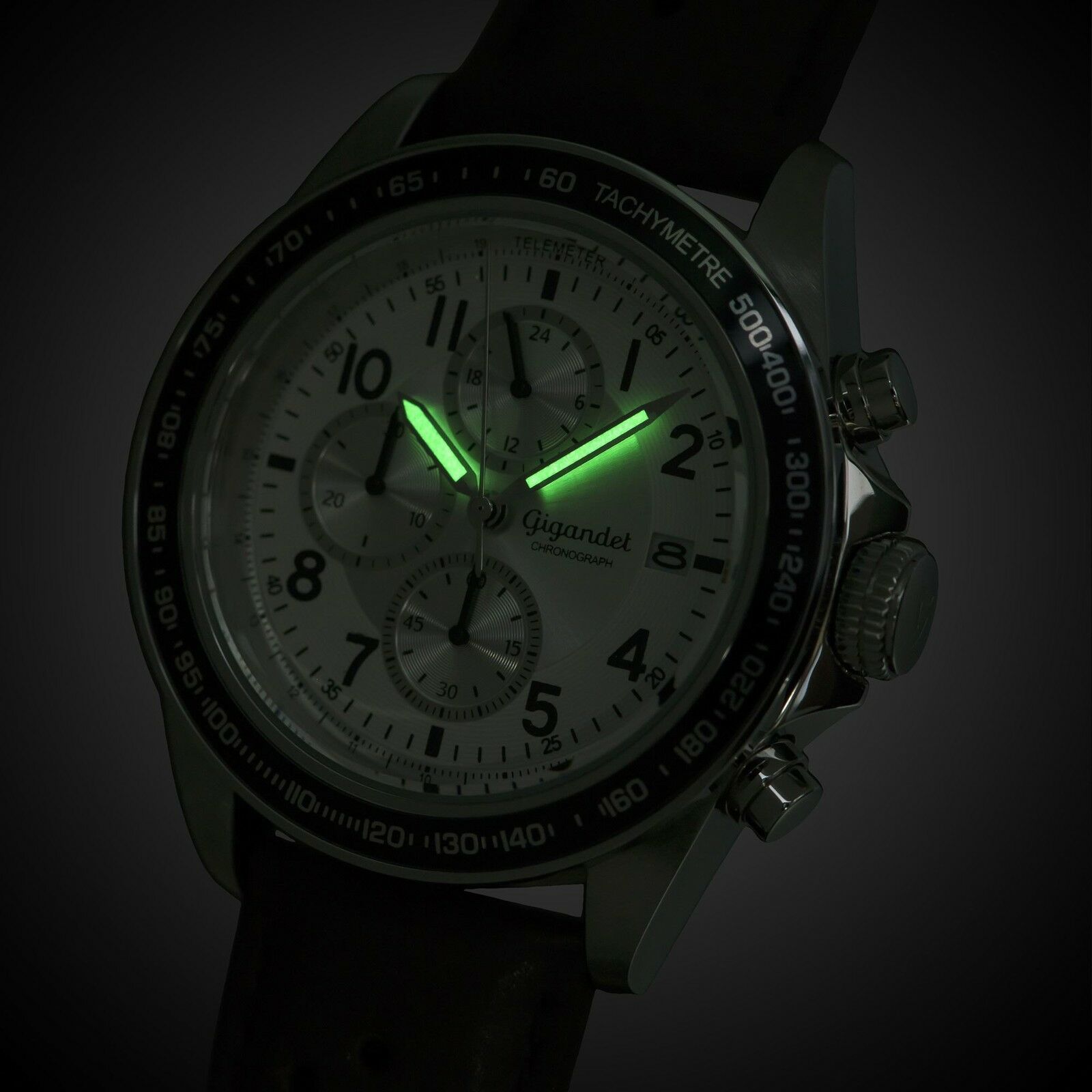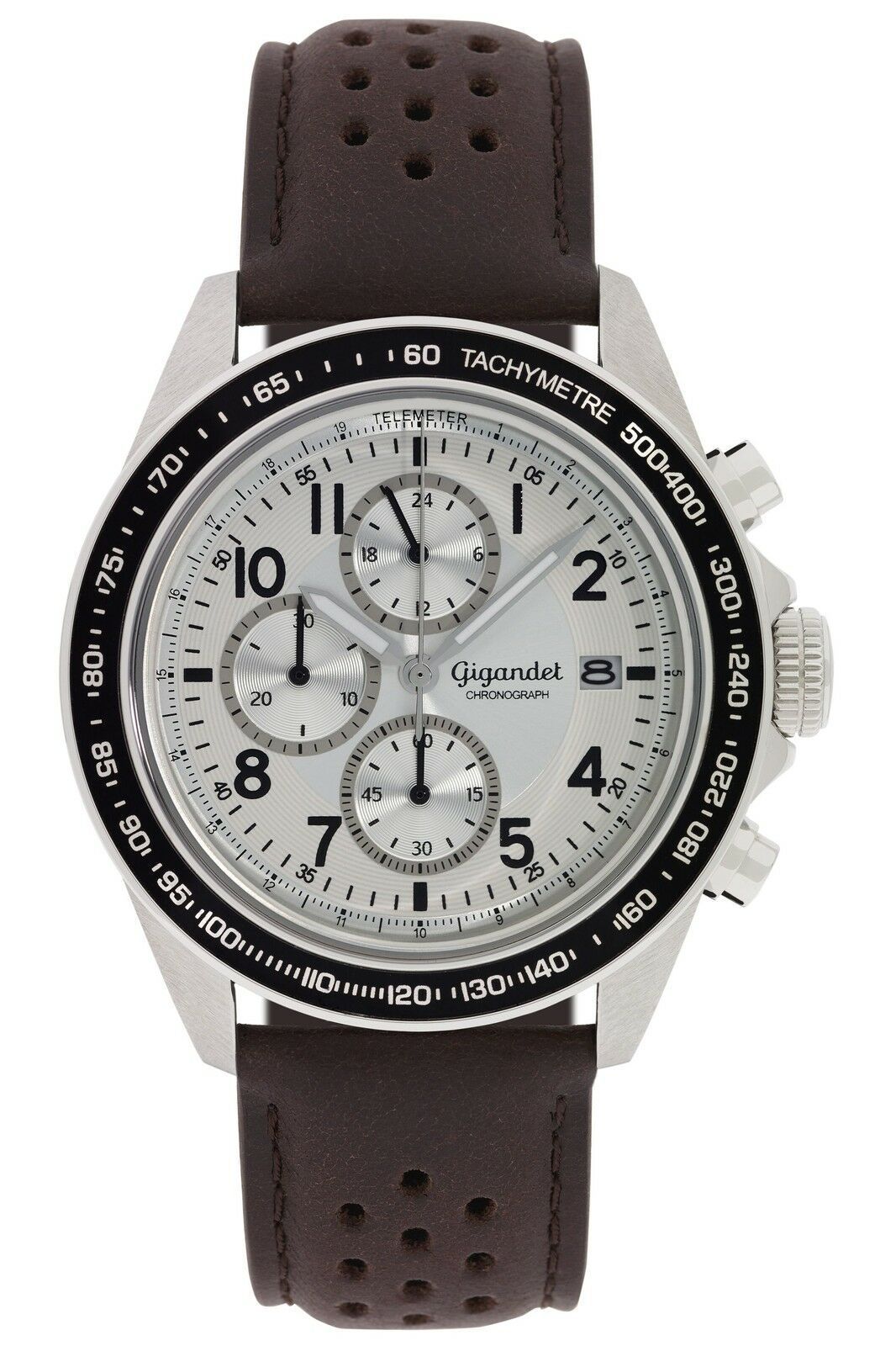 Uhr Herrenuhr Quarzuhr Chronograph Gigandet Racetrack G24-008 Silber Lederband