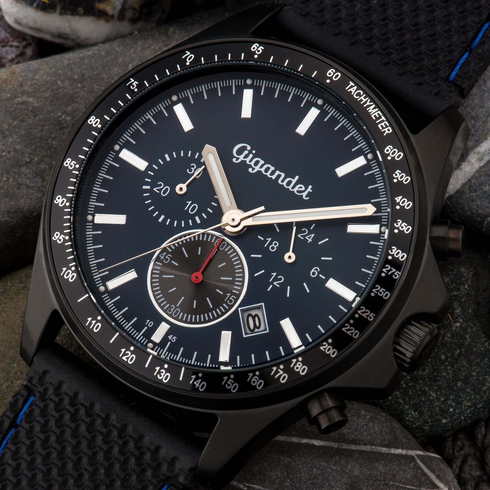 Uhr Herrenuhr Quarzuhr Chronograph Gigandet Volante G3-010 Blau Kautschukband