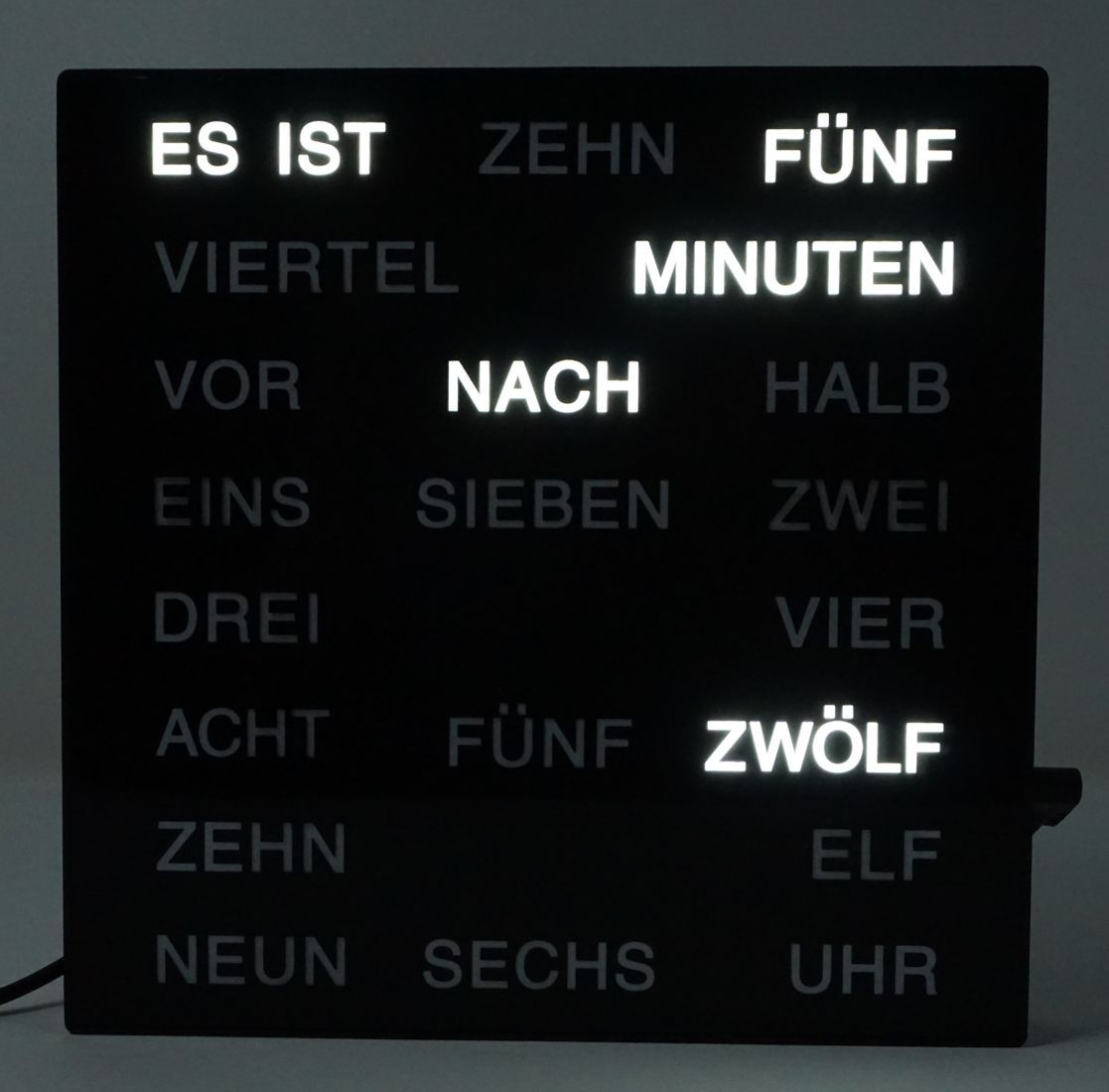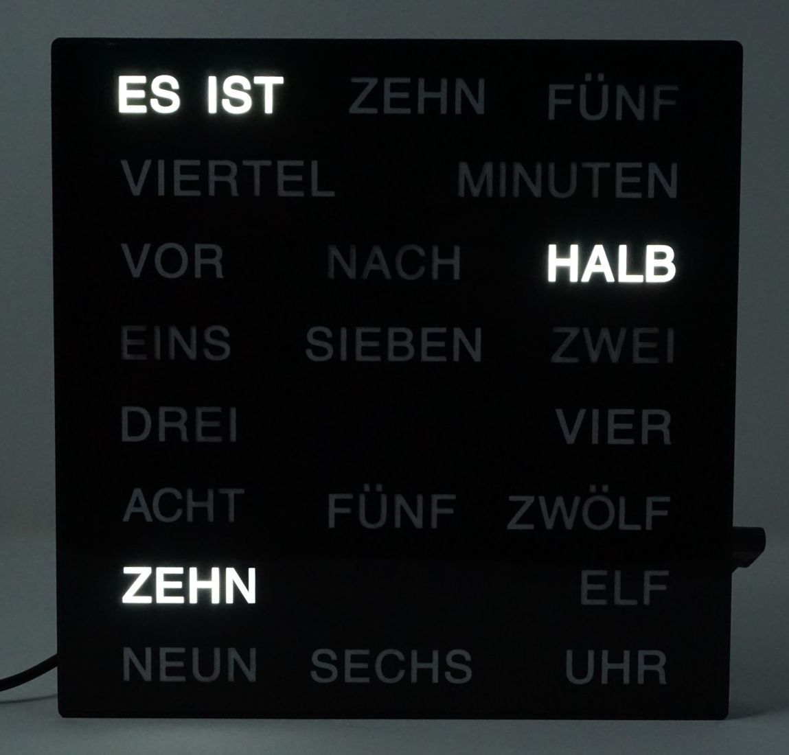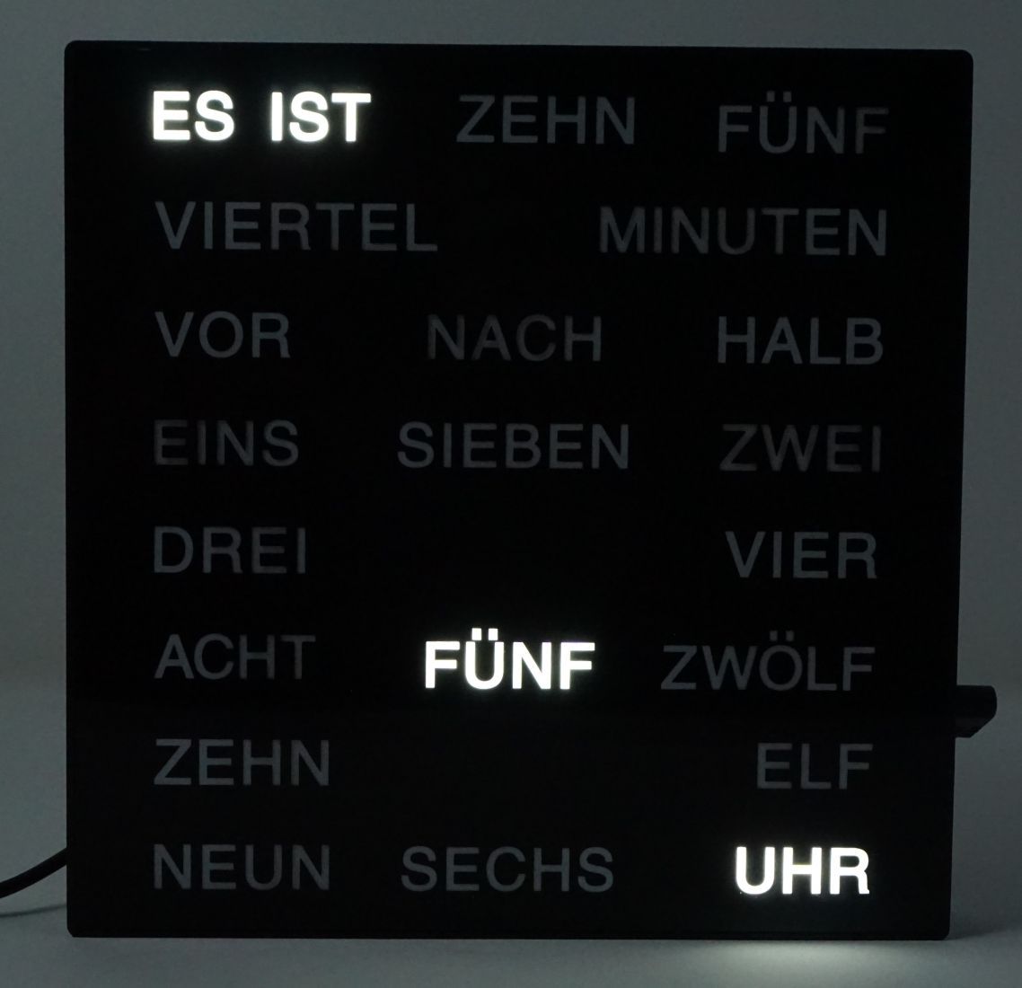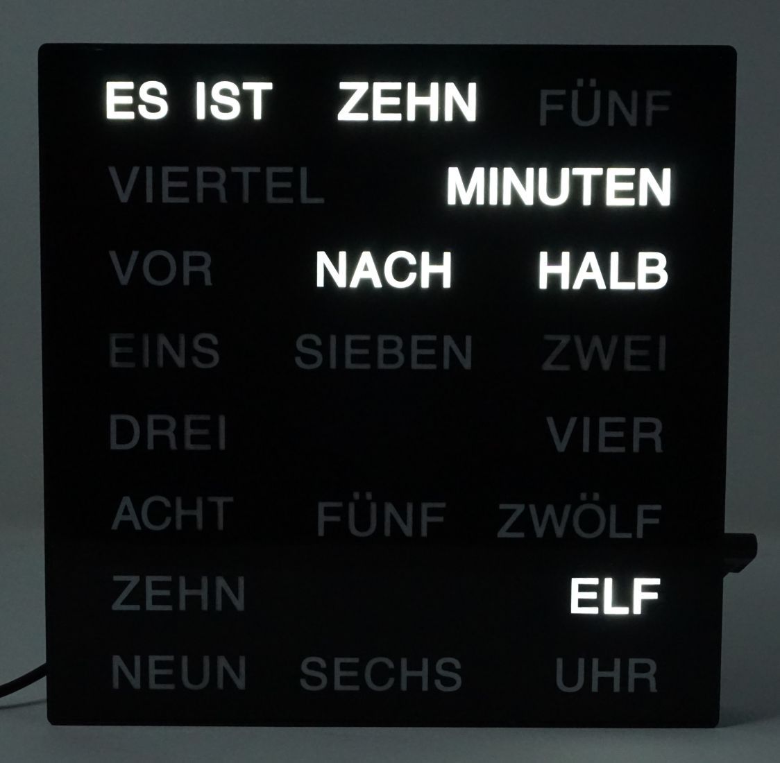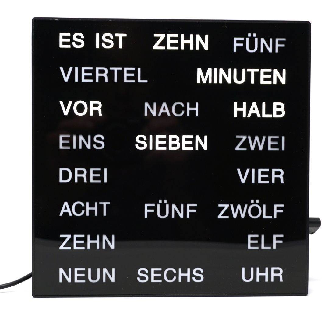 Uhr mit LED Wortanzeige Tischuhr Wortuhr 20 x 20 cm