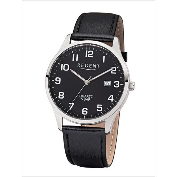 Regent Uhr - Quarz Edelstahl - schwarz mit Zahlen
