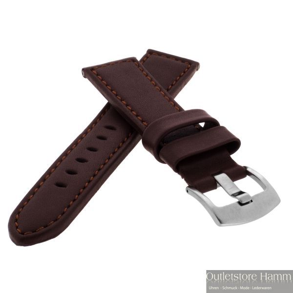Uhrenarmband 'Basel' 20mm Leder dunkel braun 00007