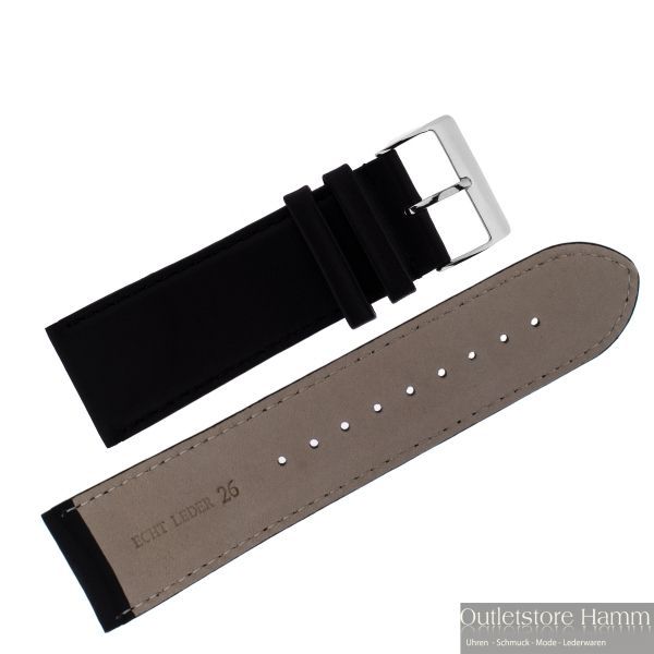 Uhrenarmband 'Chur' Leder schwarz 26mm 00042