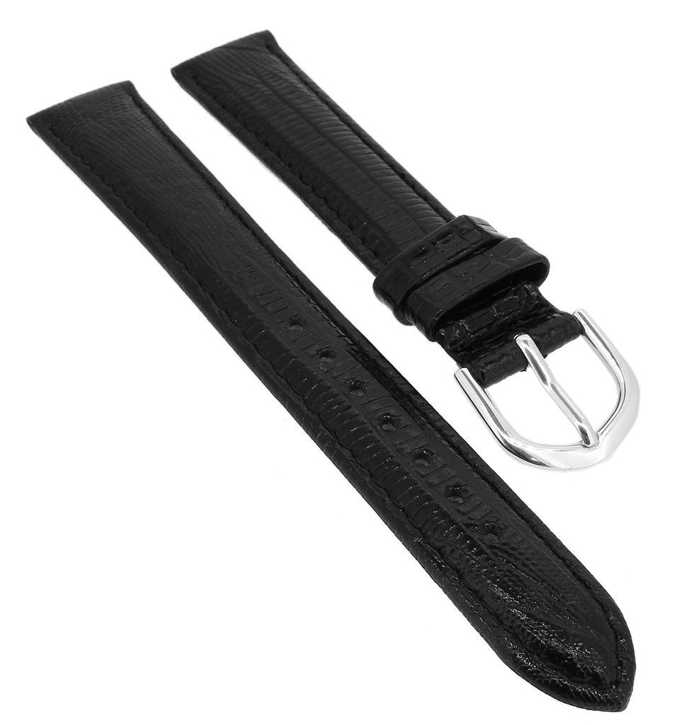 Uhrenarmband | Leder Eidechsprägung seidenglänzend | schwarz | 34155