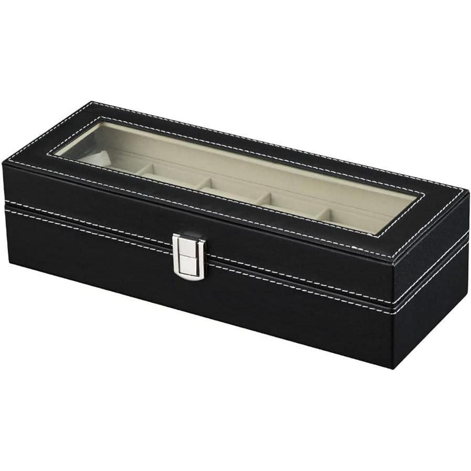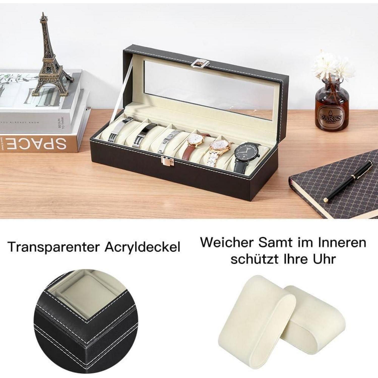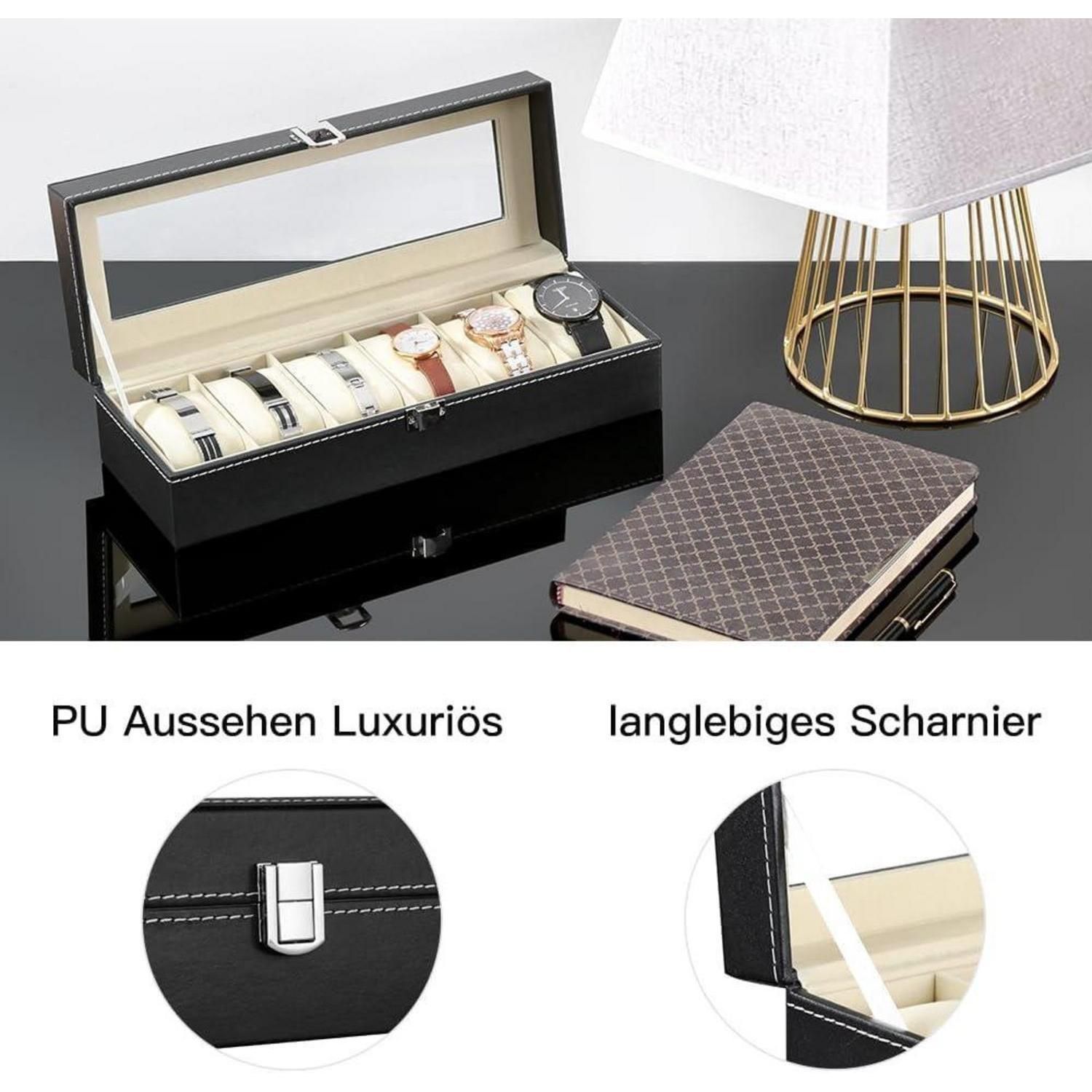 Uhrenbox für Herren mit Glasfenster - Aufbewahrung für 6 Uhren