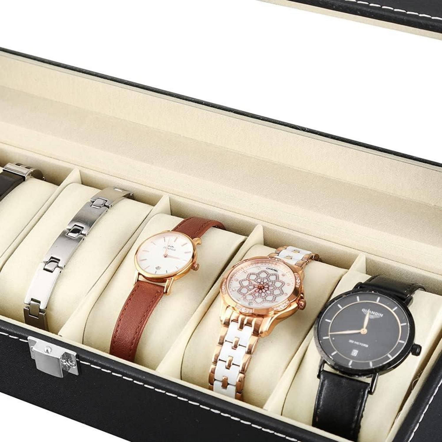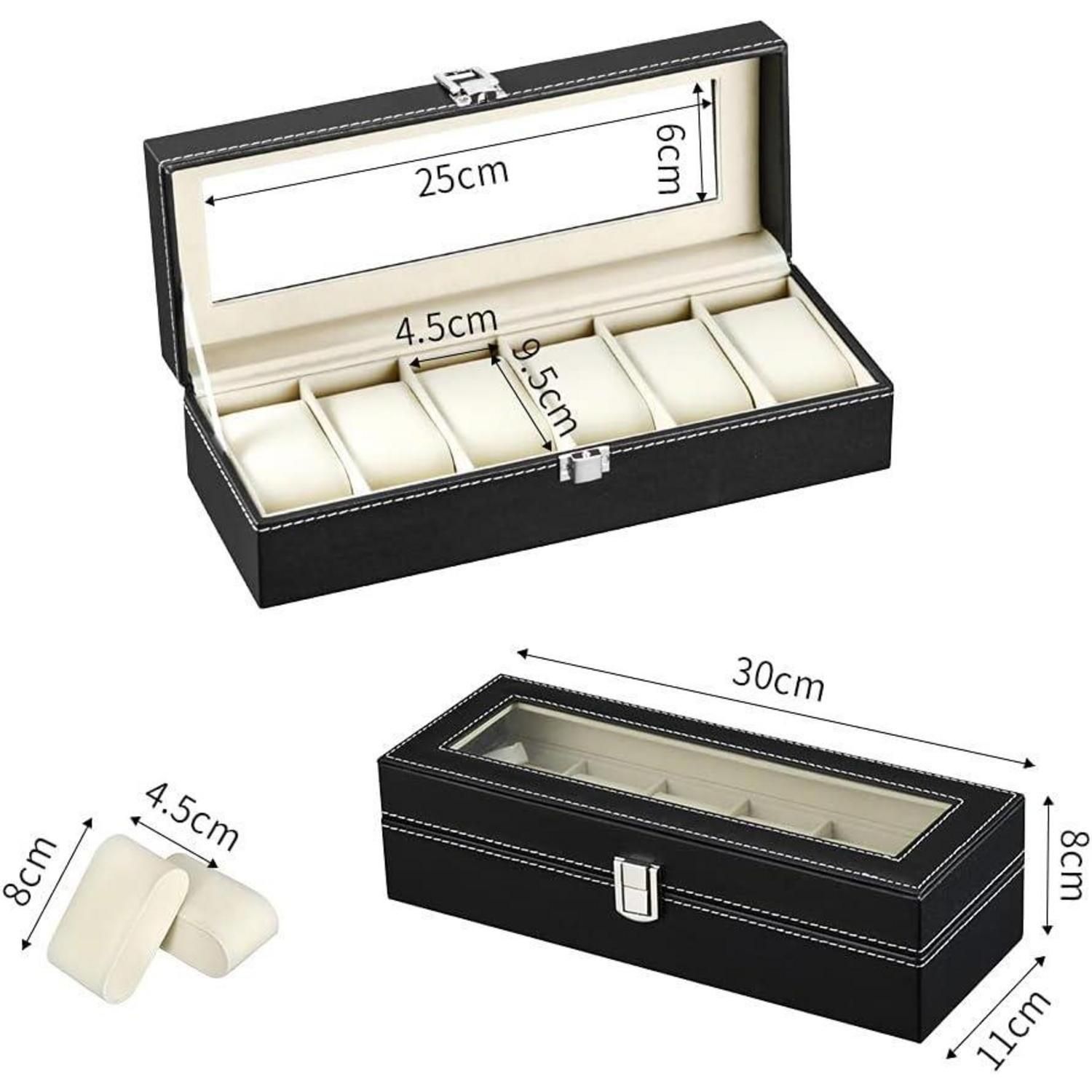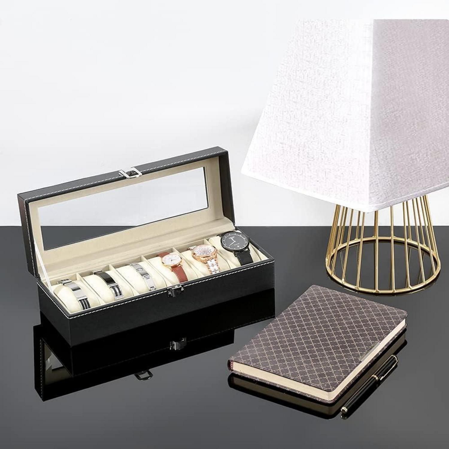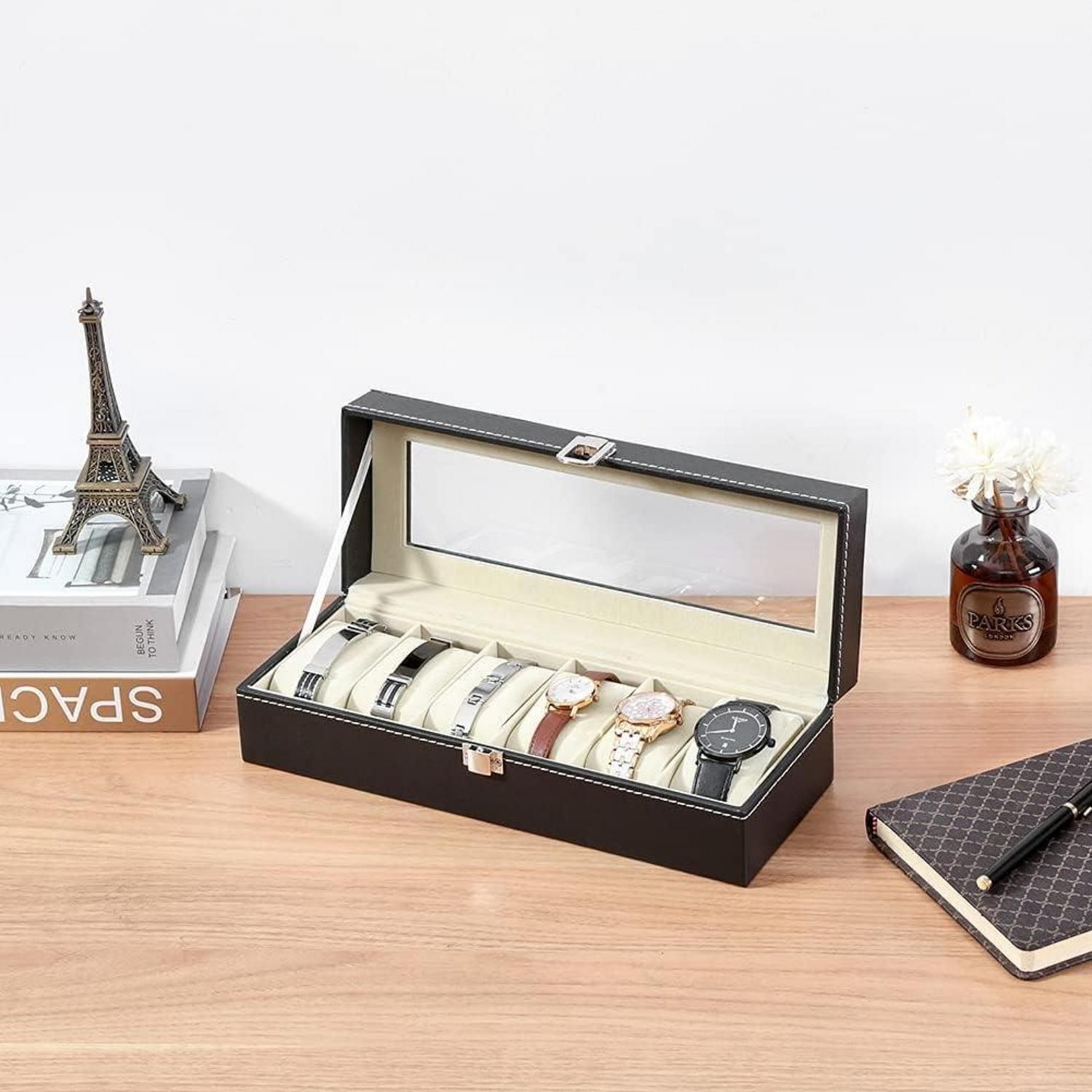 Uhrenbox für Herren mit Glasfenster - Aufbewahrung für 6 Uhren