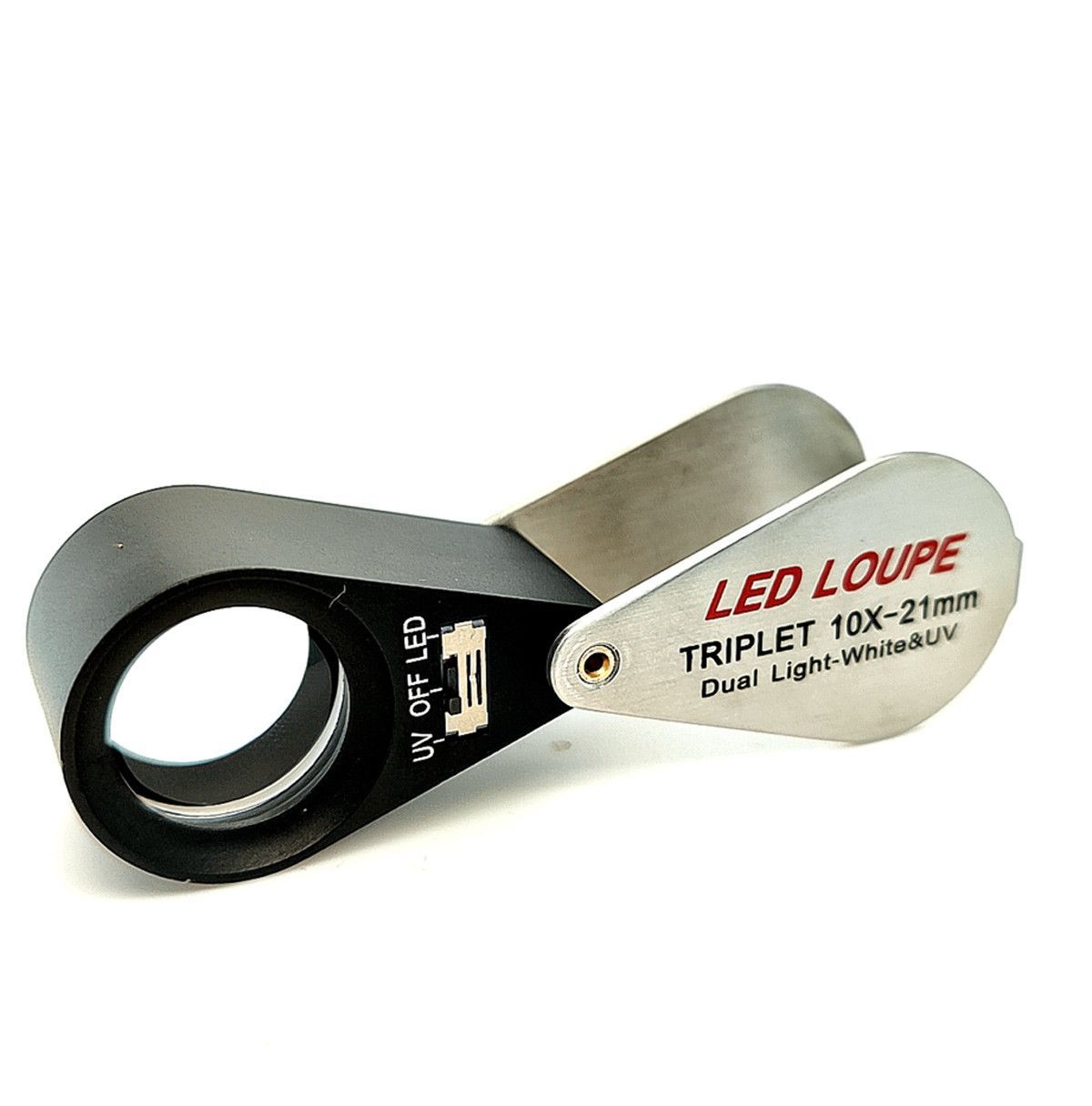 Uhrmacherlupe Taschenlupe Lupe mit Licht 6 LED und UV-Licht 10-fach