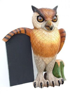 • Eule mit Angebotstafel mit Angebotstafel übergroß XXL 154cm für draußen aus GFK