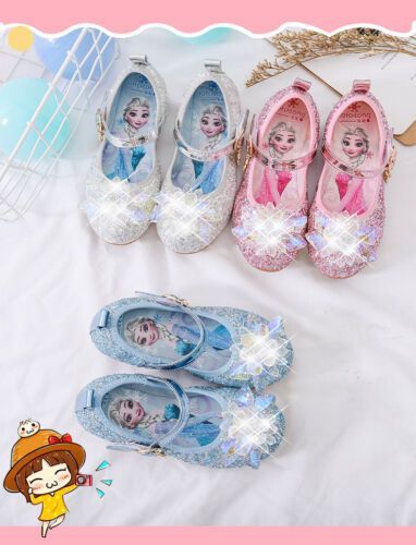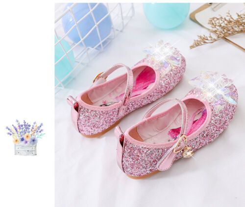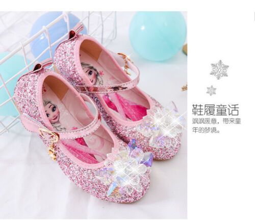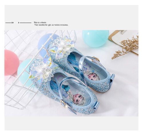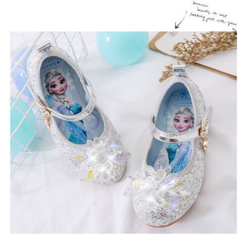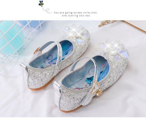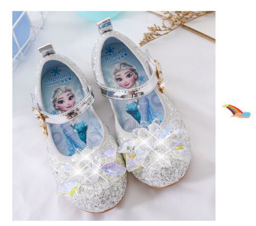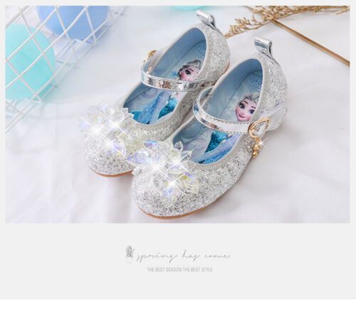 UK Kinder Madchen Elsa Prinzessin schick Party Pailletten Glas Kristall flach Prinzes