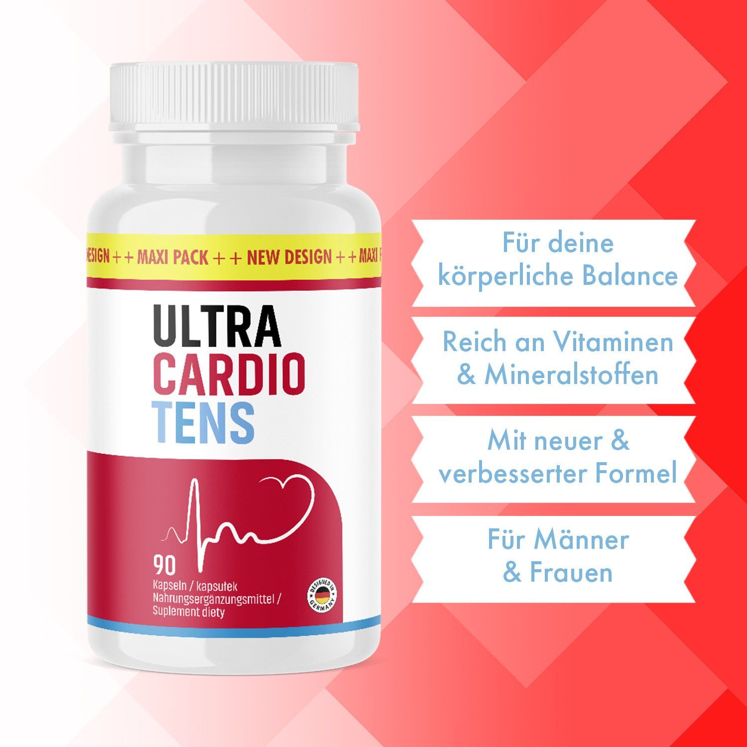 Ultra Cardio Tens X - Premium Kapseln für Männer und Frauen - 90 Kapseln
