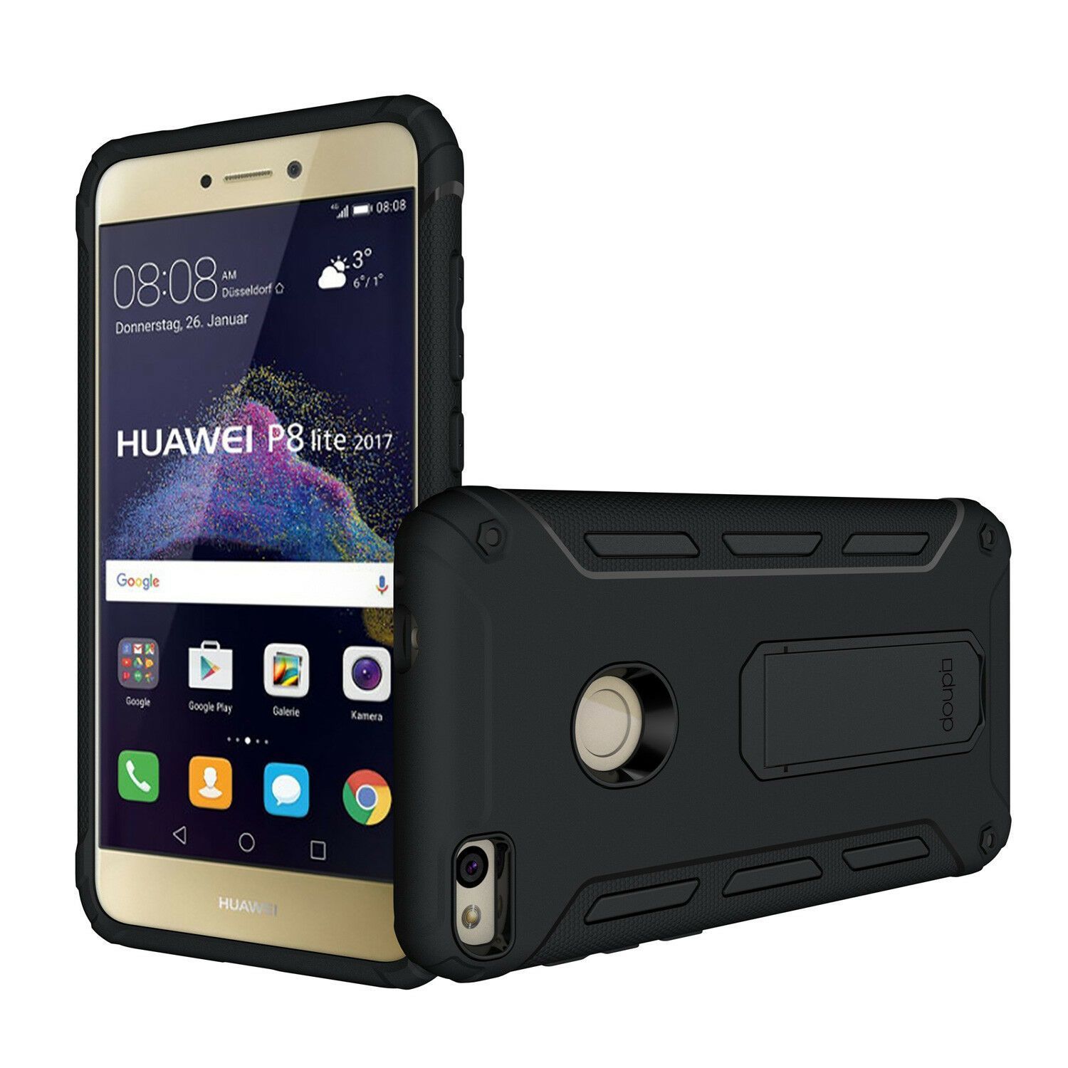 Ultra Kickstand Case Huawei P8 Lite 2017 Ständer Aufstellbar Schutz Hülle Folie