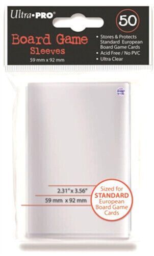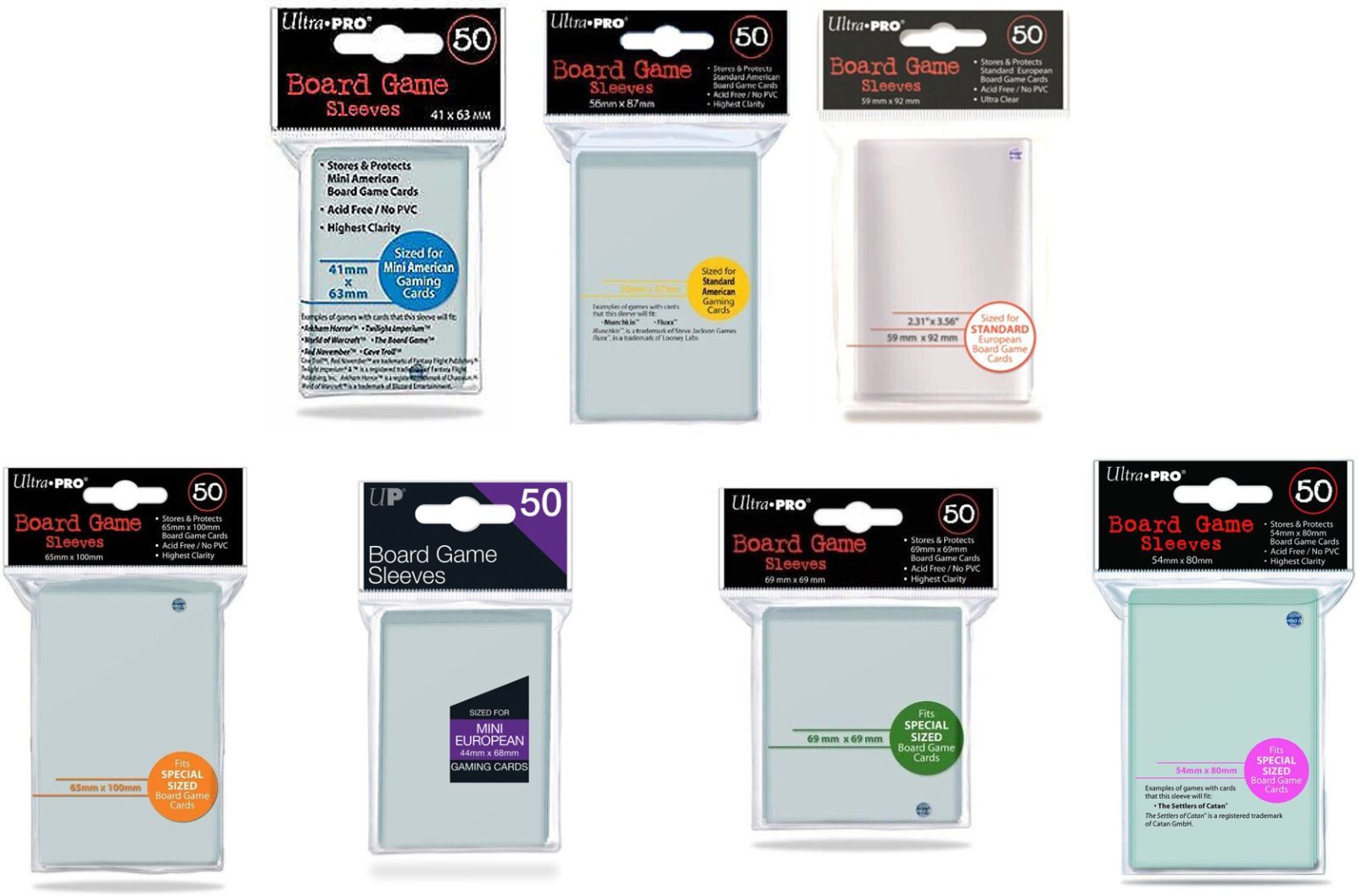 Folgende Game Sleeves zur Auswahl (jeweils 50 pro Set): Ultra Pro - UP - Board Game Sleeves 59x92mm (50) Ultra Pro - UP - Board Game Sleeves 69x69mm (50) Ultra Pro - UP - Board Game Sleeves 65x100mm (50) Ultra Pro - UP - Board Game Sleeves 44x68mm (50) Ultra Pro - UP - Board Game Sleeves 41x63mm (50