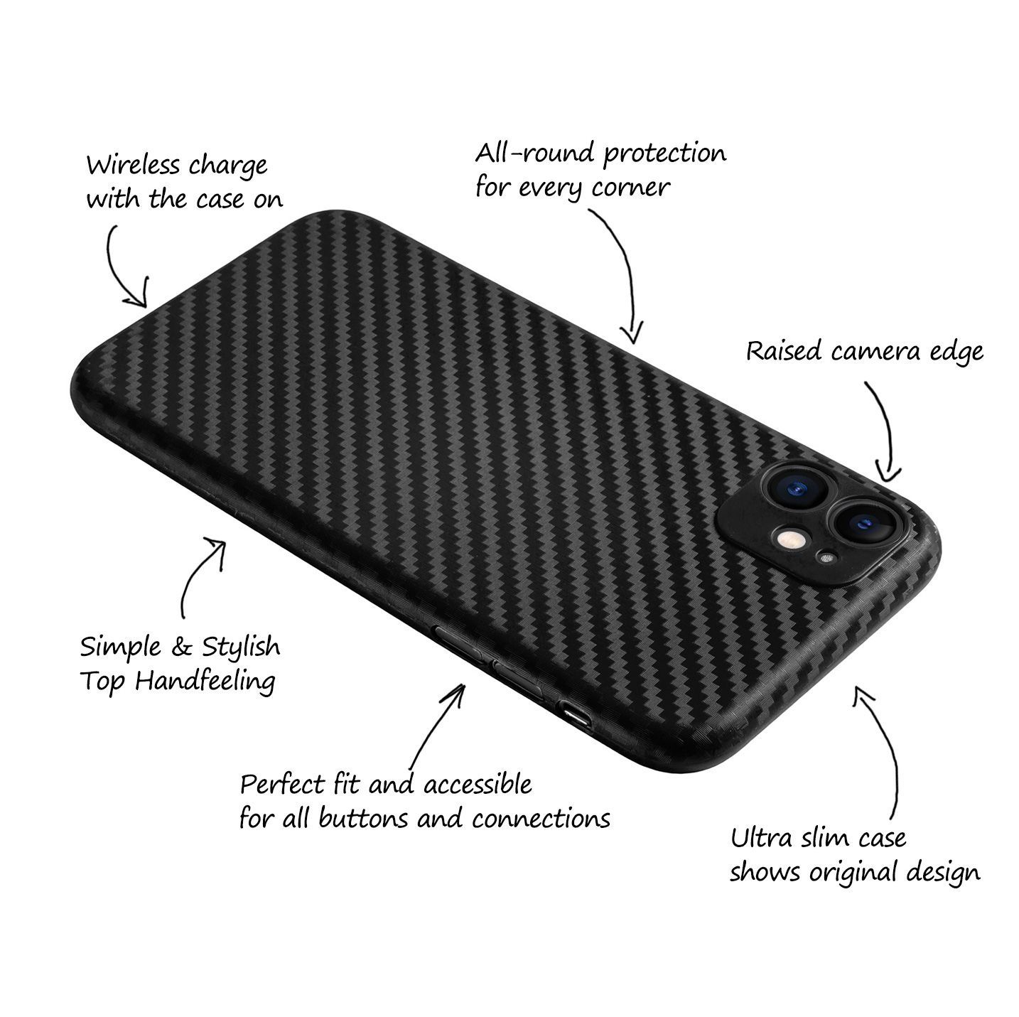 Ultra Slim Case iPhone 11 6.1" Schutz Hülle Skin Cover Schwarz Carbon Look Folie