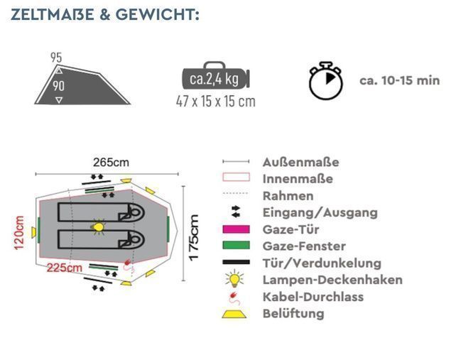 Ultraleicht Zelt 2,4 Kg Alu Gestänge Doppelwandig Biker Trekking Zelt 3000mm Was