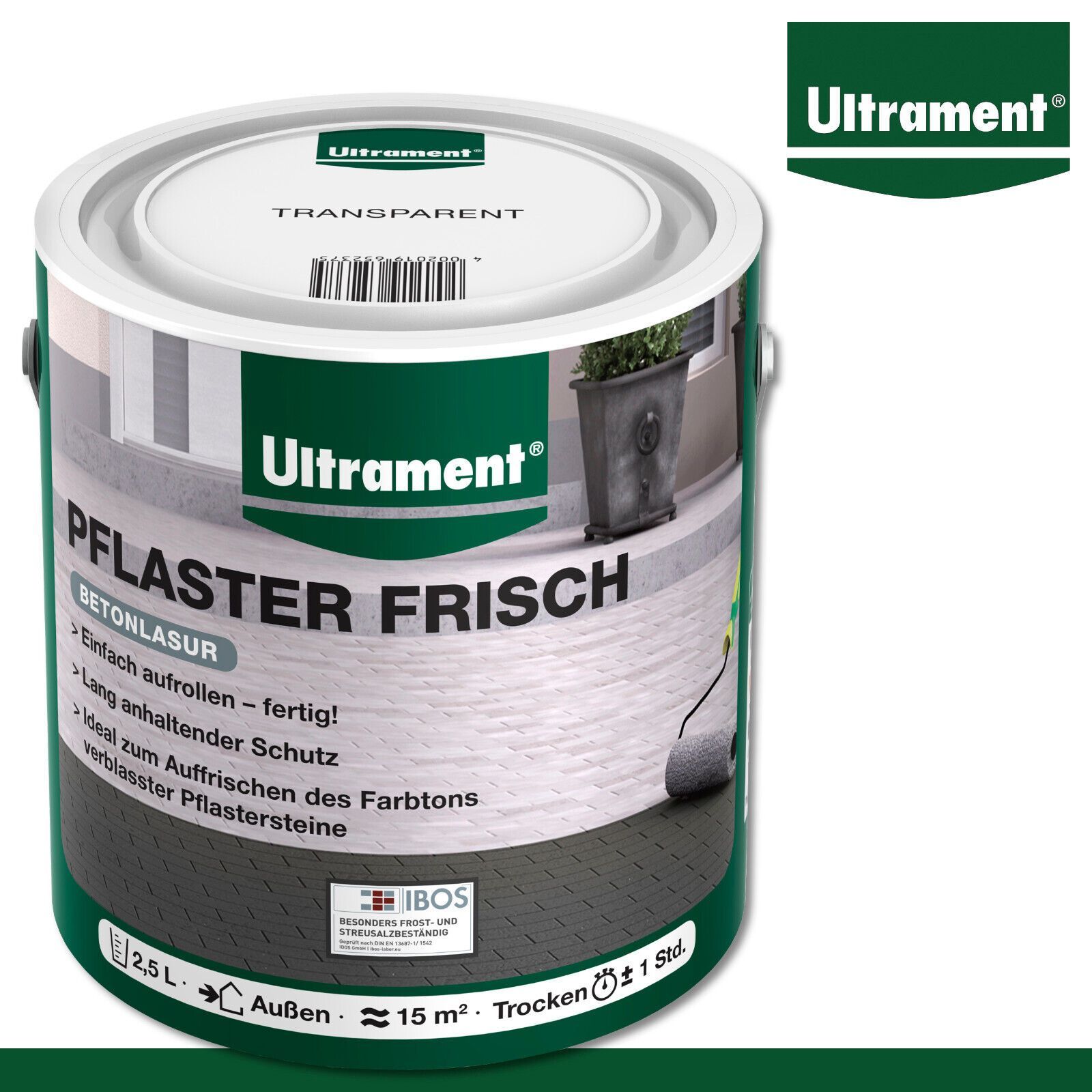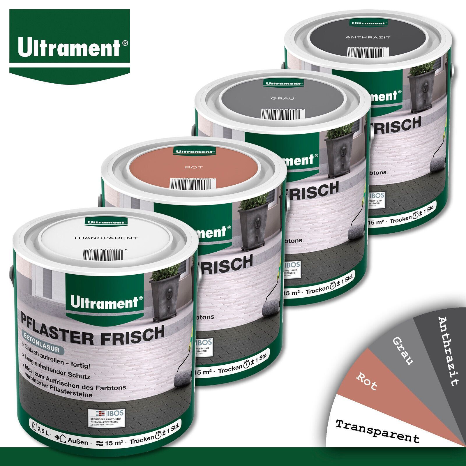 Ultrament 2,5 l Pflaster Frisch Hochwertige Betonlasur zur Auffrischung von Beton- und Pflastersteinen in privaten Einfahrten und auf Gehwegen. Die drei Farbtöne eignen sich ideal, um den Farbton alter verblichener Steine wiederaufzufrischen und diese langfristig vor Verwitterung zu schützen. Transp
