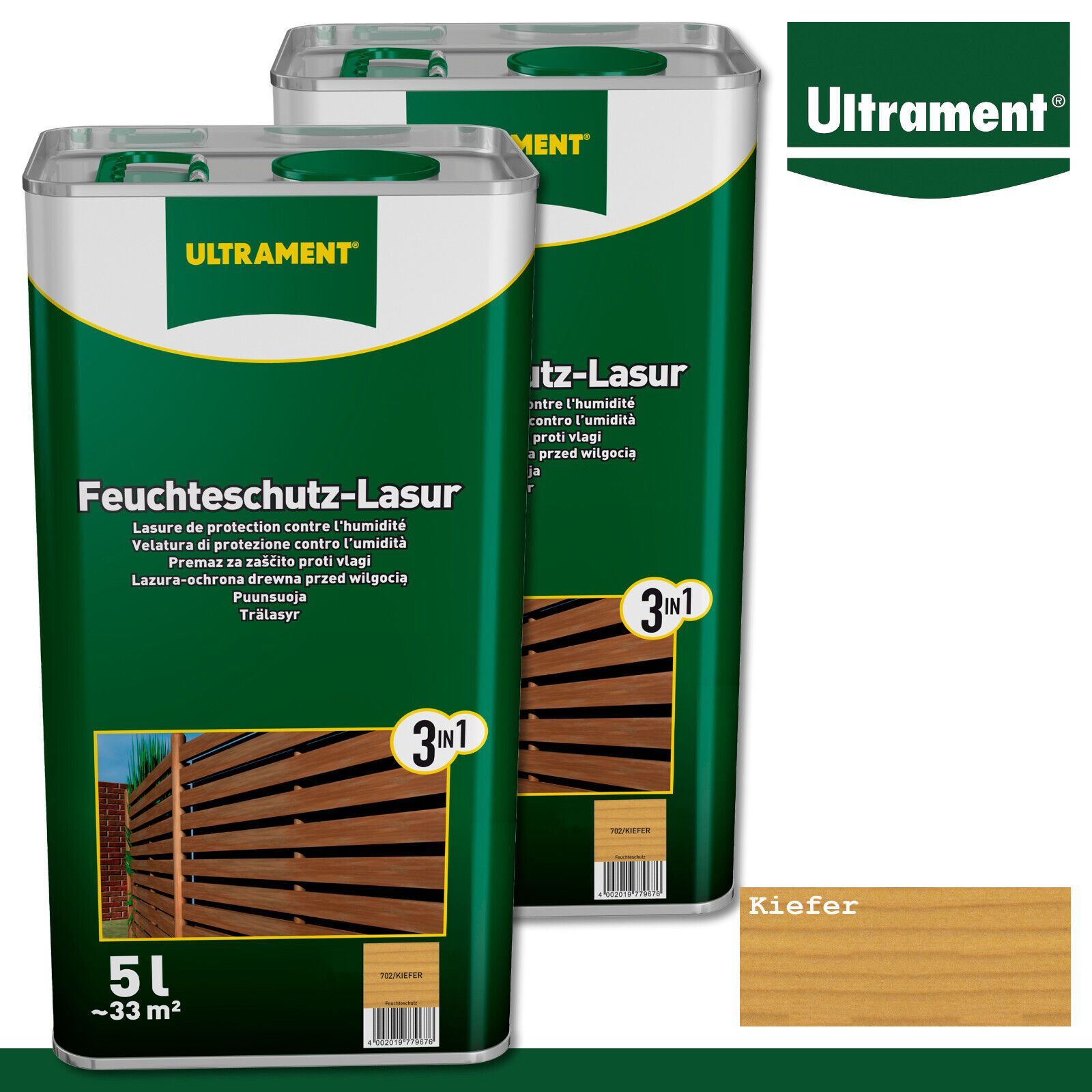 Ultrament 2 x 5 l Feuchteschutz Lasur 3in1 Holzlasur für Pergola Zaun Tor Kiefer